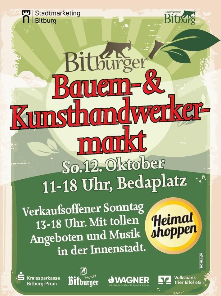 Verkoop van regionale producten zoals eieren, schnaps, honing of pasta, maar ook handwerk en nog veel meer op de Bitburgse boerenmarkt.