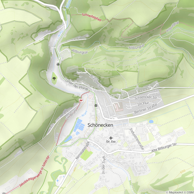 De historische burchtstad Schönecken met zijn ca. 1500 inwoners ligt in de vallei van de Nims, waarboven de ruïne van de burcht Schönecken troont. "Bella Costa" of "Clara Costa" waakt al zo'n 800 jaar over de gebeurtenissen in de Nimstal.