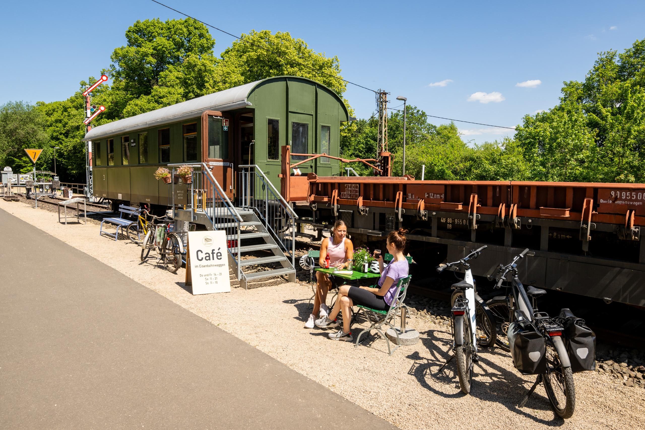 Waar vroeger in Pronsfeld het seinhuis stond, kunt u nu ons Café Stullwerk bezoeken, ingebed in het kleine spoorwegmuseum in Pronsfeld. In de gezellige en liefdevol gerestaureerde wagen krijg je dat reisgevoel van weleer terug. Bij mooi weer kunt u buiten in de zon rond de wagen genieten van goede koffie en huisgemaakt gebak of onze hartige broodjes met een koele shandy. Direct aan het Prümtal-fietspad kunt u hier heerlijk uitrusten. We kijken uit naar je bezoek!