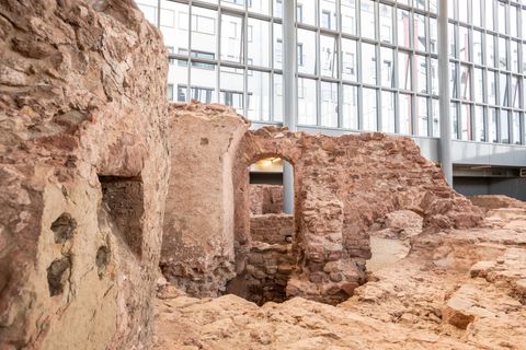 De thermen aan de Viehmarkt zijn door een beschermend glazen gebouw omgeven. Een indrukwekkende verscheidenheid aan archeologisch bewijstukken zijn hier te bewonderen.