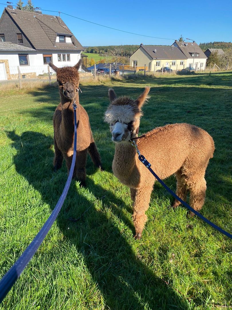 Alpaca's verhuisden in de zomer van 2021 naar Üttfeld en genieten van de frisse lucht en het buitenleven in de Eifel. De alpaca's kunnen in de wei worden bezocht of ze kunnen samen gaan wandelen.