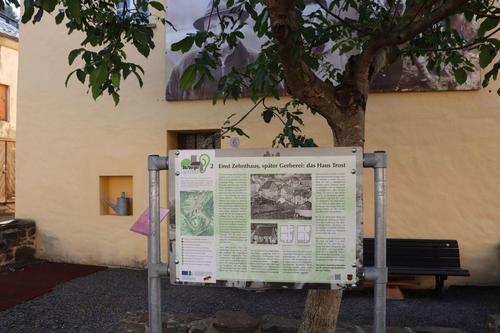 Dasburg zien, horen en verbazen - dat is wat 10 luisterstations in het stadscentrum van Dasburg en in het kasteelgebied bieden. De audiotour begint in het centrum van het dorp aan de hoofdstraat, voor de bloemenwinkel. Alle stations zijn op loopafstand. Tijdens de rondrit door Dasburg maak je op geselecteerde plaatsen een kleine reis door de tijd - in ieder geval met je oren.