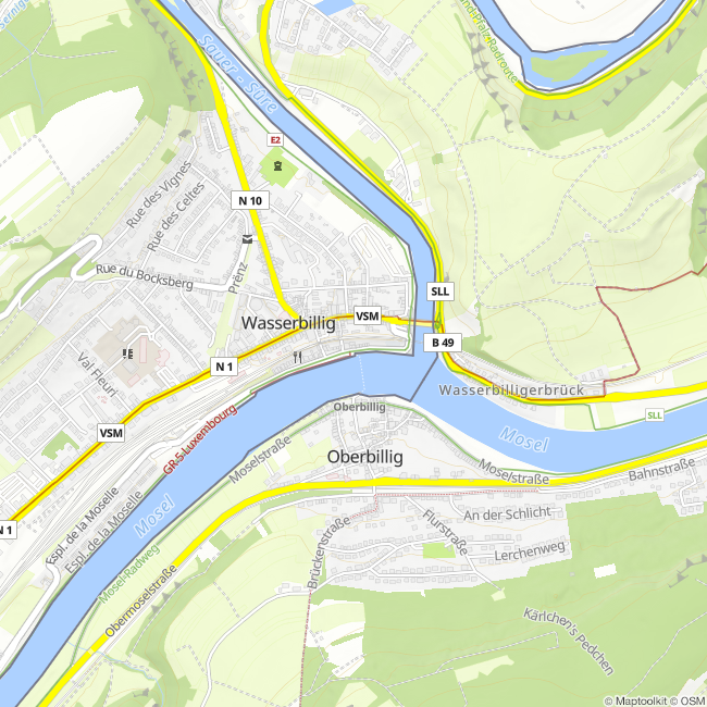 U kunt met een veerboot over de Moesel van Wasserbillig (Luxemburg) naar Oberbillig (Duitsland) en omgekeerd. Het veer vaart de volgende tijden: