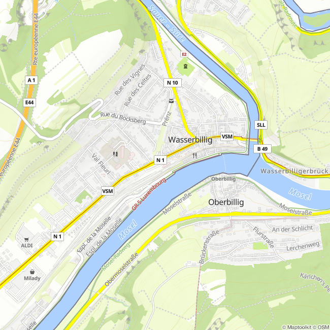 De CFL biedt bus en trein naar het station van Wasserbillig.