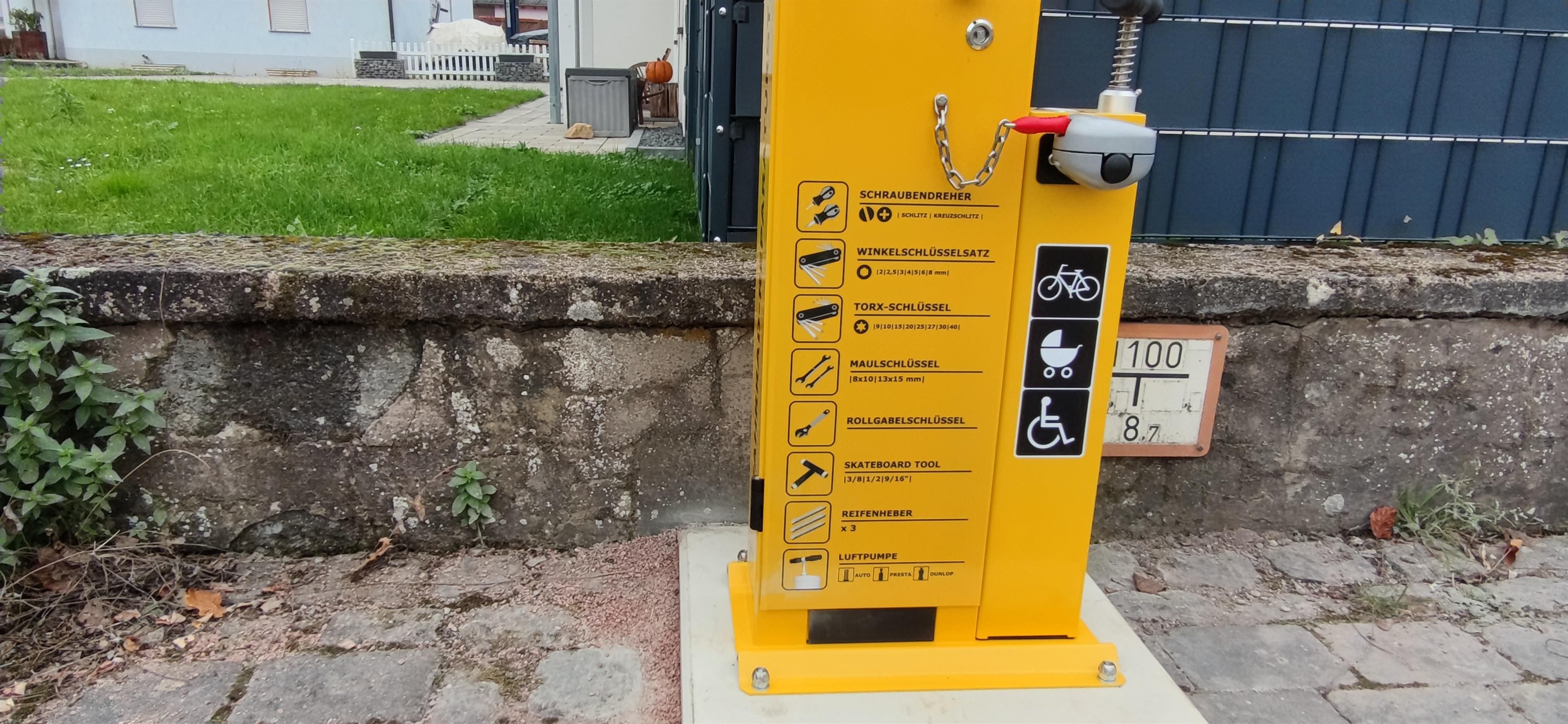 Het fietsreparatiestation bevindt zich in het centrum van Ralingen.