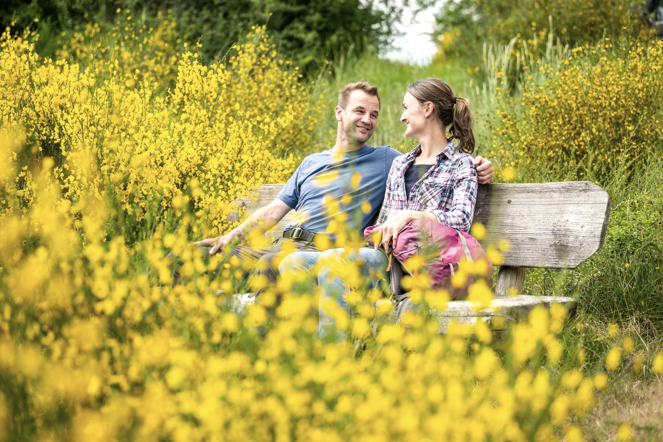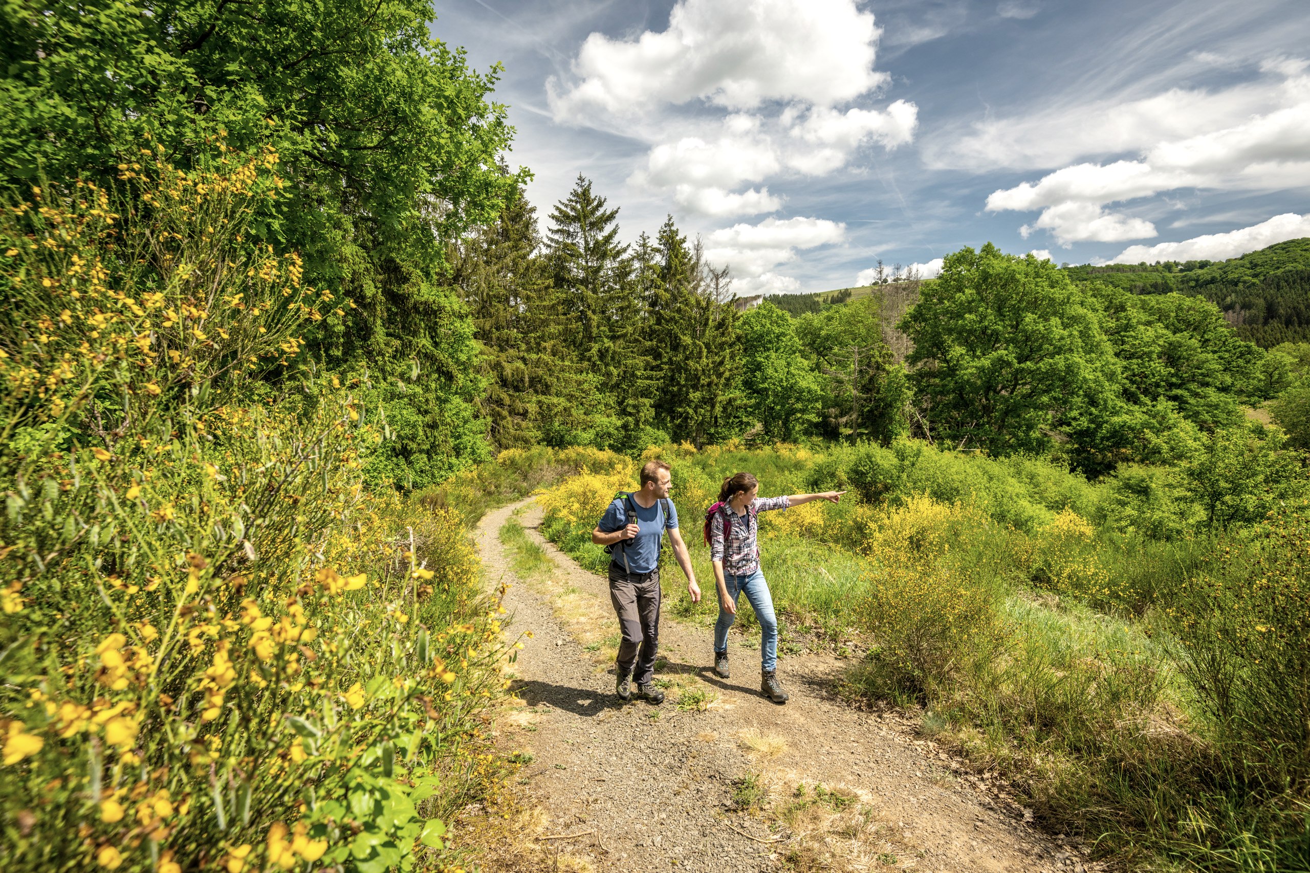 Deze wandeling in het NaturWanderPark delux is een absolute insidertip onder de wandelingen in de Eifel, vooral in het voorjaar, want hier bloeit de goudgele brem in overvloed: