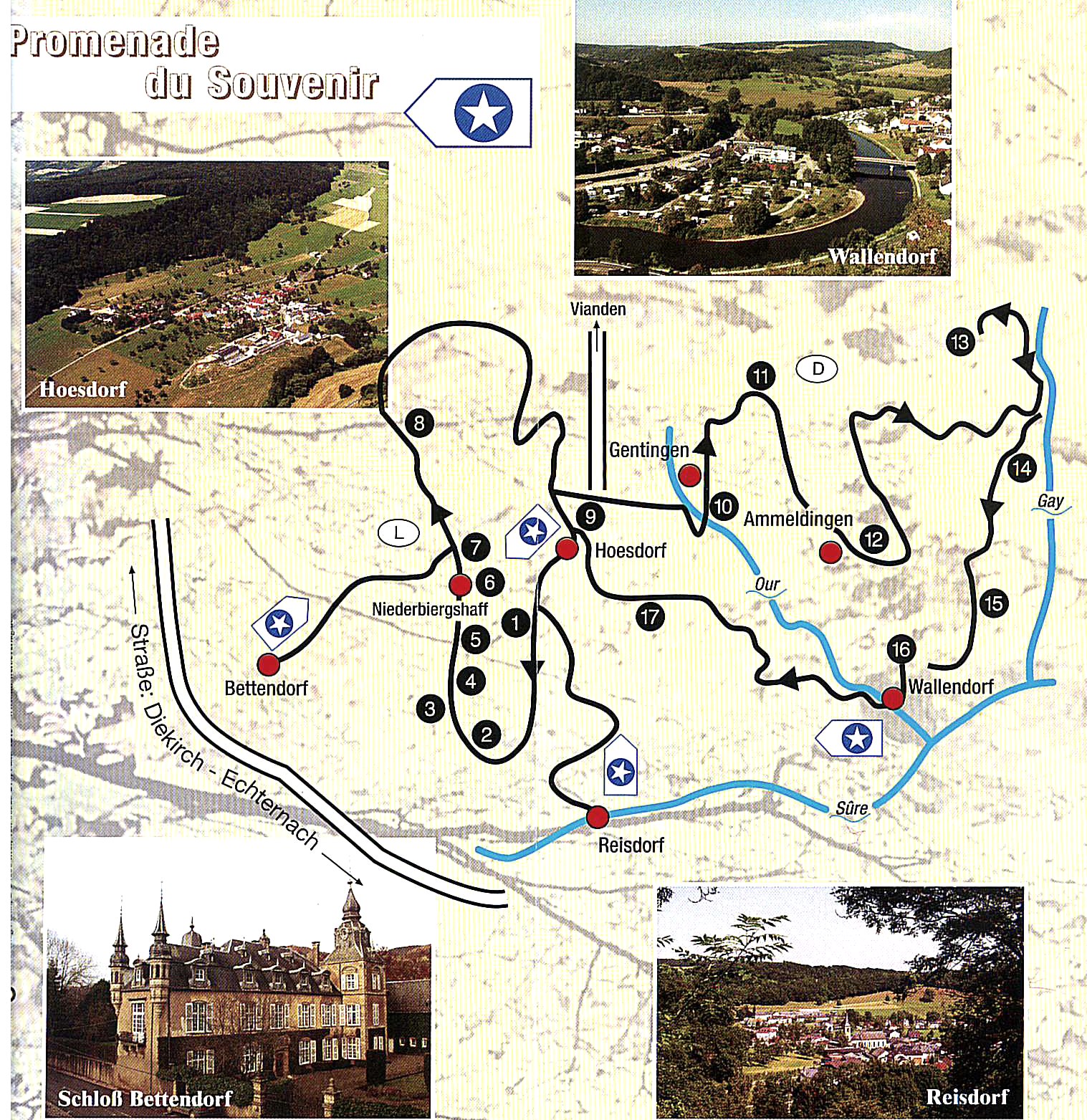 Deze tour herinnert aan de dramatische gebeurtenissen die plaatsvonden in dit grensgebied tussen eind 1944 en 1945. Het kleine dorpje Wallendorf aan de Duits-Luxemburgse grens, waar de Sauer en de Our samenvloeien, was ooit het toneel van hevige gevechten.