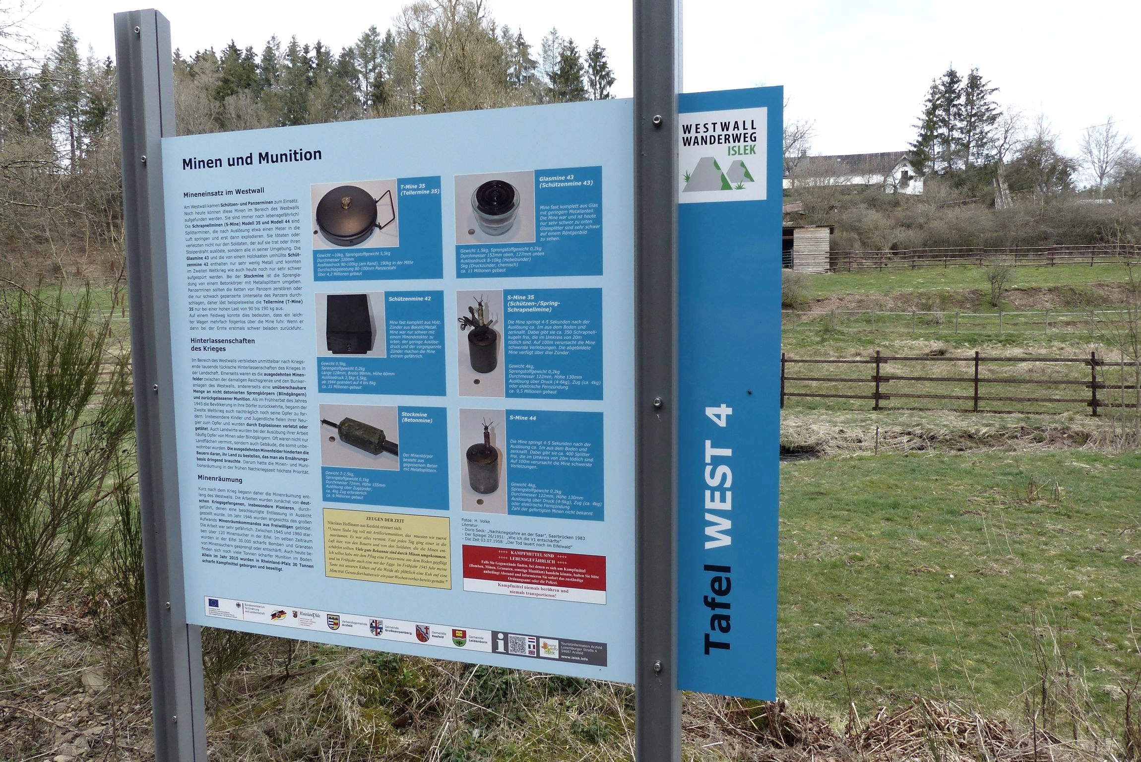 De opgeblazen bunkers en bulten (antitankversperringen) van de Westwall zijn ook indrukwekkend. Voor een paar meter ben je ook op het wandelpad Islek Westwall.