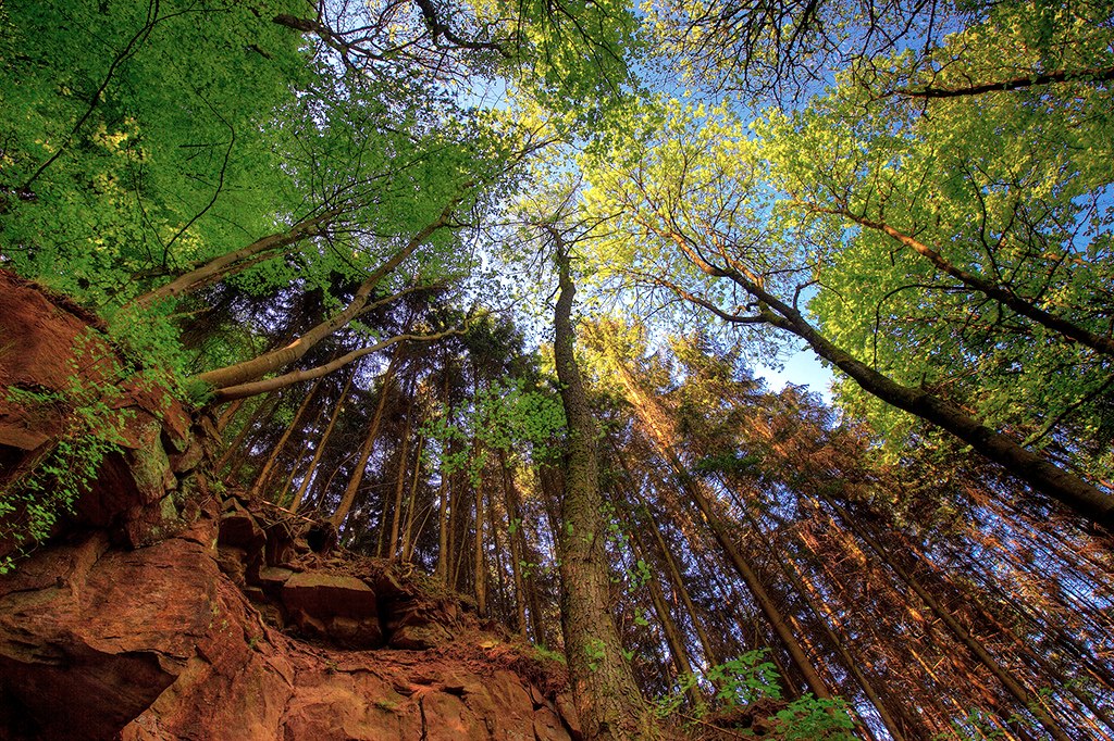 Het rode zandsteen van de Eifel loopt als een rood lint langs de hele wandeling - door diep ingesneden dalen en over glooiende plateaus. Soms presenteren de zandsteenrotsen zich in machtige schoonheid - soms zijn de sporen van de voormalige steengroeven te herkennen als bewijs van de traditionele natuursteenwinning. Over lange stukken van de hooglanden zijn ze begroeid met betoverende natuur. De wandelpaden slingeren door loofbossen en langs velden, weiden, heggen en fruitbomen.