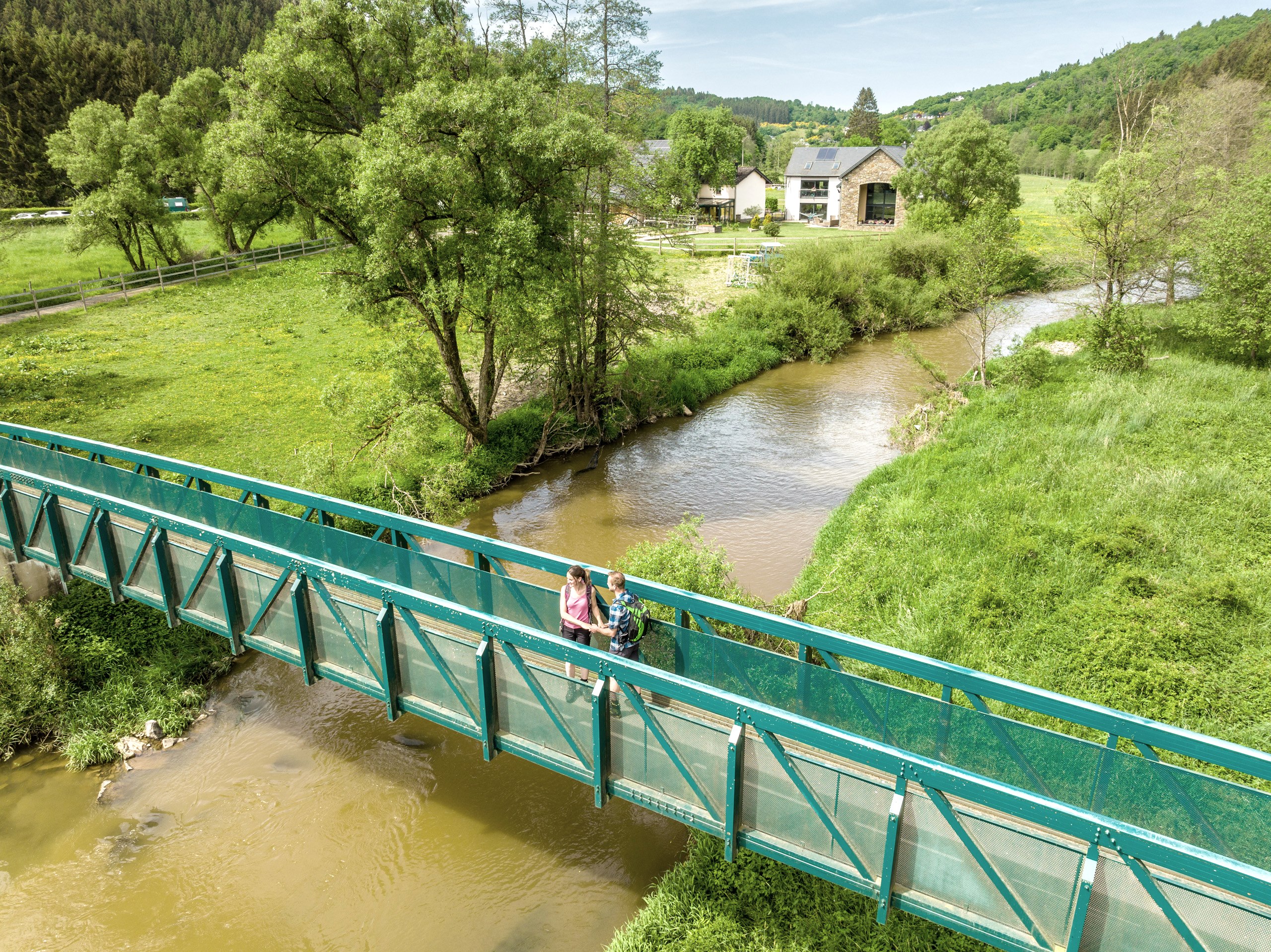 Het water sprankelt. Het klatert in ontelbare kleine watervalletjes over de gepolijste kiezels. Het is een prachtige bedding die de Our voor zichzelf heeft gemaakt. Honderdduizenden jaren lang heeft de Our zijn kronkelende vallei uitgesleten in de leisteen en grauwacke dekens van de Islek - soms smal en steil, soms wat breder met uiterwaardenbosjes en weelderige weiden. Dan gloort de zon op de bodem van de vallei, trekt aan de dauwdruppels en brengt troostende warmte. Haar stralen dringen door de heldere stroom en je kunt forellen zien die behendig stroomopwaarts scharrelen.