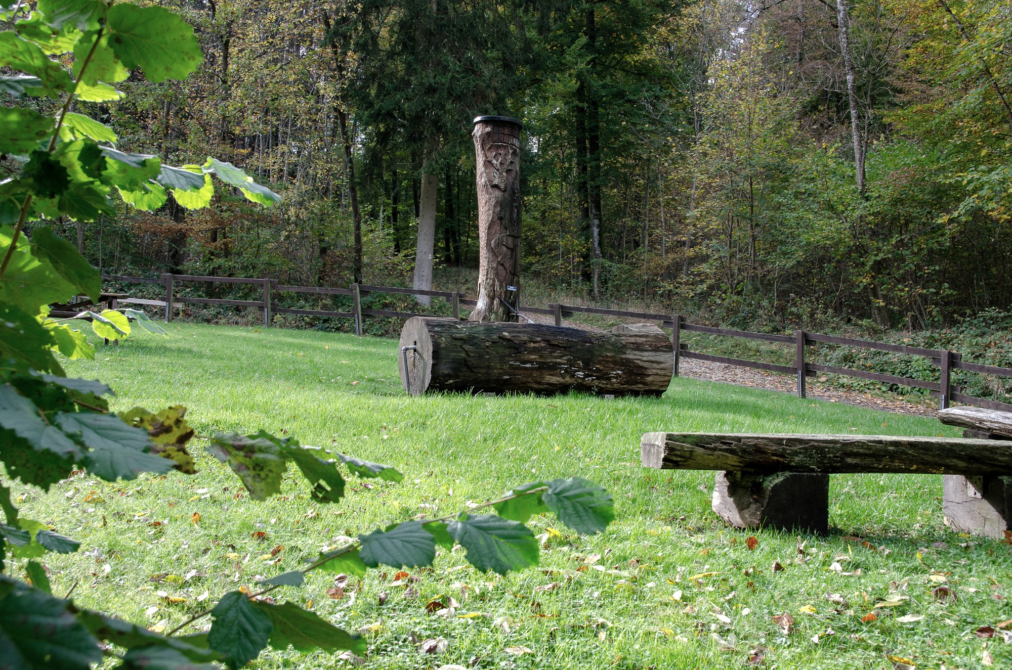 Ga verder tussen de paddocks over de Keuperbach naar de Wolsfelder Berg. Na het oversteken van de L2 bereiken we links de Hubertusbrunnen fontein. In de zomer is dit een gelegenheid voor een rustpauze en een "Kneipp-wandeling" in het watertrappelbad. Het water is erg koud en alleen de moedigen kunnen meerdere rondjes lopen.