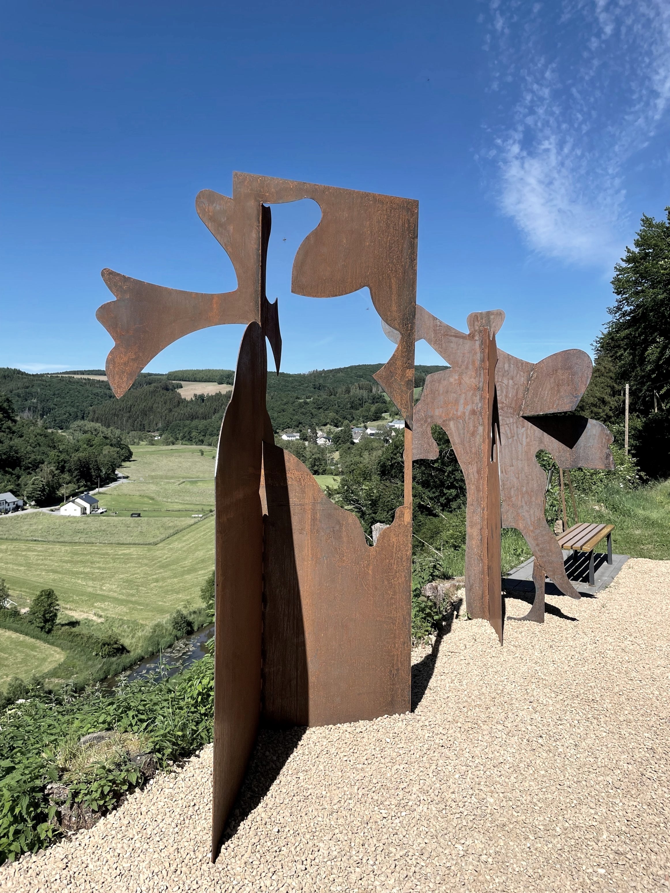 In totaal zijn er 10 sculpturen van 9 kunstenaars uit 3 landen te bewonderen langs het ongeveer 8 kilometer lange pad over de landsgrenzen van Stoubach (B) via Welchenhausen (D) naar Ouren (B) en Lieler (L).