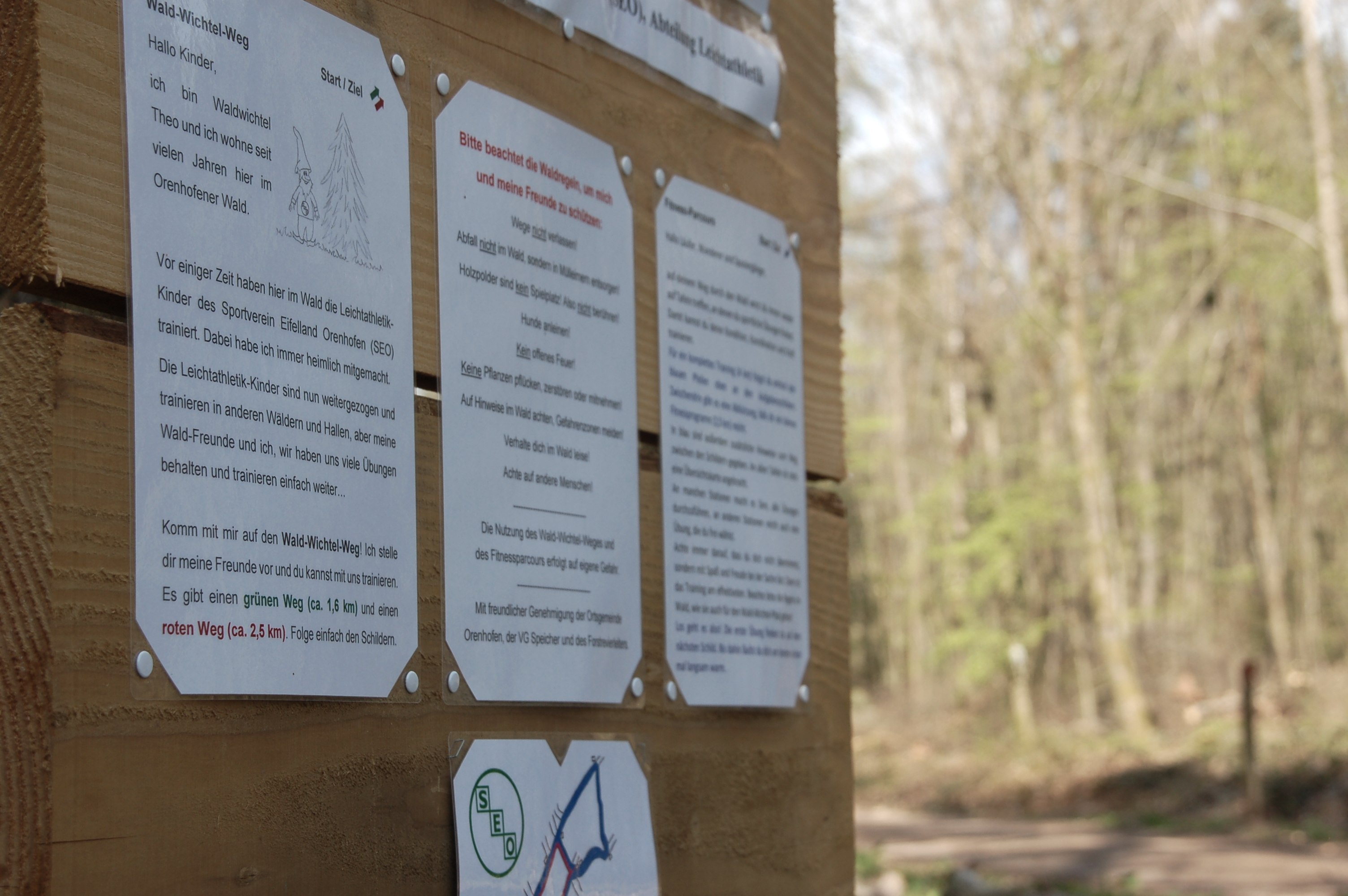 Tijdens de lockdown van het coronavirus konden veel evenementen en vrijetijdsactiviteiten niet plaatsvinden. In deze periode kwamen de atletiektrainers van de sportvereniging Eifelland Orenhofen op het idee om hun atleten iets speciaals aan te bieden. Ze hebben twee bewegingspaden in het bos van Orenhofen aangelegd om het plezier in bewegen ook te behouden als er niet getraind wordt. Een boskabouterpad voor de kleintjes en een fitnesspad voor de groteren: