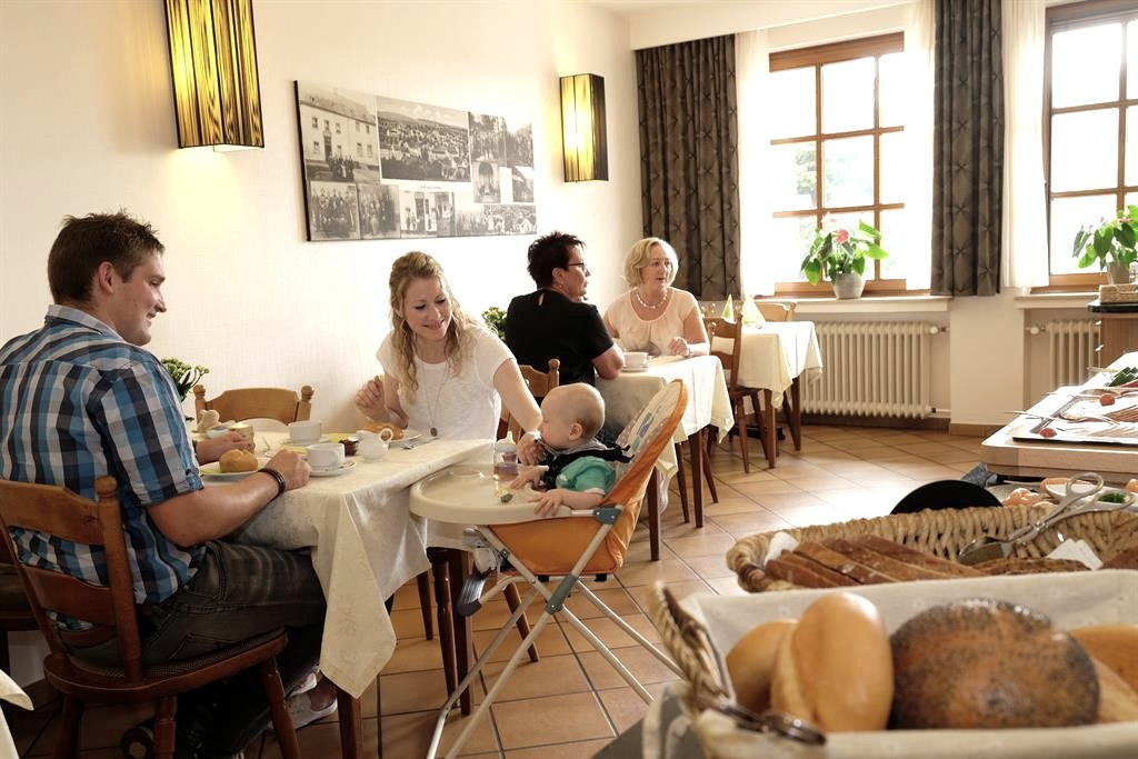 Geniet 's ochtends van het Eifeler ontbijtbuffet of 's avonds van een heerlijk driegangendiner met producten van onze eigen boerderij.