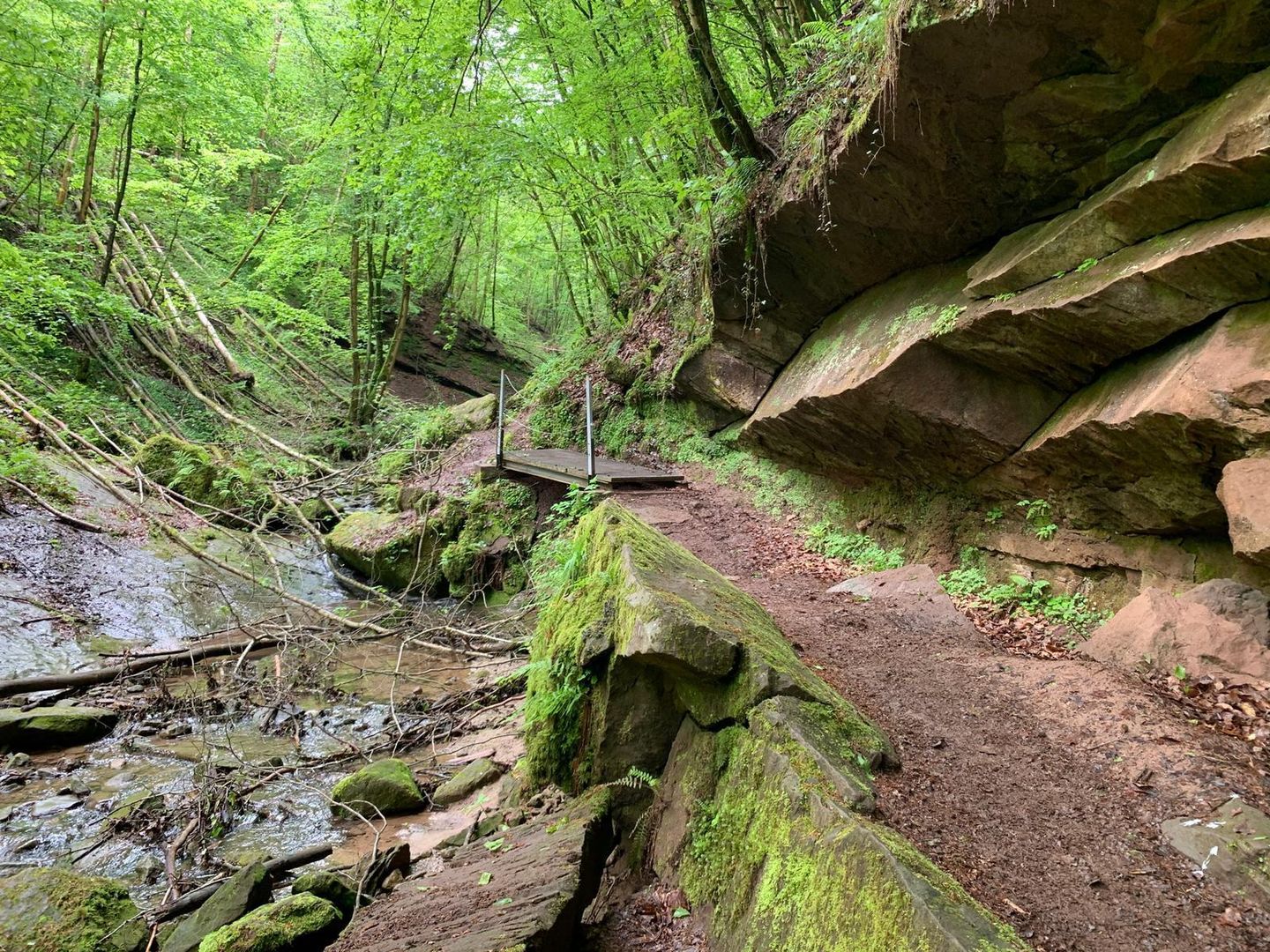 Rund um Kordel finden Sie eine Vielzahl von Buntsandstein-Felsen und Höhlen, unter anderem die Kaulay, die Geyersley und die Spitzley. Die Entstehung dieser Formationen hat eine lange Vergangenheit: Vor ca. 230 - 220 Millionen Jahren lag die heutige Südeifel am Rande eines größeren Meeres. Unter tropischen, wüstenähnlichen Bedingungen kam es in dieser Gegend zur Ablagerung von Flußmaterialien und durch Passatwinde herantransportierte und akkumulierte Dünensande. Diese Ablagerungen wurden im Laufe von Jahrmillionen zu dem noch heute anstehenden Buntsandstein verfestigt. Typisch für Sedimente ist ihre schichtweise Ablagerung. Daher kann man die Gesteine des Buntsandsteins noch weiter untergliedern (Unterer, Mittlerer, Oberer Buntsandstein sedimentiert. In dieser Sedimentationszeit kam es zunehmend zu einem wilden Nebeneinander von fluvialen Sand- und Kiesbankablagerungen (Gerölle), Stillwasserbereichen, Überschwemmungsgebieten und benachbart auch von äolischen Dünensanden. An Flußengstellen blieb aufgrund der höheren Strömungsintensität nur grobes Geröll zurück (Rinnensedimente), aus dem später die heutigen Felszonen entstanden sind (Konglomerate). Ungestört müßten heute die Sedimentpakete des örtlichen Buntsandsteins eine flache Tafellandschaft darstellen, aber durch weiträumig erfolgte Aufwölbung der Erdkruste und durch Hebungen und Senkungen (Verwerfungen, Klüftungen) tieferen Gesteins (unterhalb des sedimentierten Buntsandsteins), ist eine stark gestörte Bruchschollenlandschaft entstanden. Während die Buntsandsteinschichten aufgekippt wurden, grub sich die Kyll in das tektonisch bewegte Gestein immer tiefer hinein. Diese stark erodierende Wirkung der Kyll und ihrer Nebenbäche hat unter anderem auch zur Entstehung der Felsen bei Kordel beigetragen. Geyerley und weitere benachbarte Felsen (Hochburg, Spitzley, Korpesley, Kauley) aber sind als Pilzfelsen mit bis zu 30 m hohen Felswänden hauptsächlich durch selektive Verwitterung (widerstandsfähige Schichten über weicheren) entstanden. Die widerstandsfähigen Schichten, welche bei den angesprochenen Felsen meist kleine Plateaus und bastionsartige Felsvorsprünge bilden, stellen die oben angesprochenen ehemaligen Rinnensedimente mit hartem Koglomerat dar. Die sich unterhalb der konglomeratischen Felsbänke befindenden Sandsteine sind leicht erodierbar und verwitterbar und daher oft (auch bei der Geyersley) von Hangschutt bedeckt. Im rückwärtigen Bereich der Geyersley-Felsbastion fällt die flache, leicht geneigte Tafellagerung entlang des Wanderweges auf, der Weg verläuft relativ eben. Oben wurde schon auf die Zerstückelung der Buntsandsteinschichten hingewiesen, im Kleinen äußert sich dieser tektonische Vorgang im Auftreten senkrechter Klüfte im Gestein (bis zu 2 m breit). Beim Zusammentreffen dieser Kluftflächen und leicht erodierbarem Gestein (unterhalb der Felsen) ist im Laufe der Zeit durch Verwitterung und z.B. Strudelbildung durch Kyll und Nebenbäche zur Bildung von Klufthöhlen gekommen. Zu diesen Klufthöhlen zählen im Umkreis die Hochburghöhlen und Klausenhöhle. Dagegen ist die bekannteste Höhle des Gebietes, die Genovevahöhle, nur durch reine Auswitterung entstanden und wurde zusätzlich durch Menschenhand vergrößert. Die verwitterten Gesteinsreste befinden sich heute als Schuttkegel vor der Halbhöhle. Viele dieser geologischen Prozesse kann man auch unmittelbar auf der Felsbastion der Geyersley beobachten. An den Konglomeratblöcken auf dem Felsplauteau (mit bis zu 10 m großen Geröllen) setzt wabenartige Verwitterung nur ganz allmählich ein. Man erkennt, dass der Sandstein zwischen den Geröllen geschichtet ist. Gelbe Flecken und Überzüge auf dem Gestein stellen Salzausblühungen dar. Aufgrund ihrer seltenen Eigenart ist die Geyersley (und viele benachbarte Felsen) als Naturdenkmal ausgewiesen. Das häufige Vorkommen konglomeratischer Felszonen ist in dieser Art in der Südeifel bei Kordel einzigartig.
