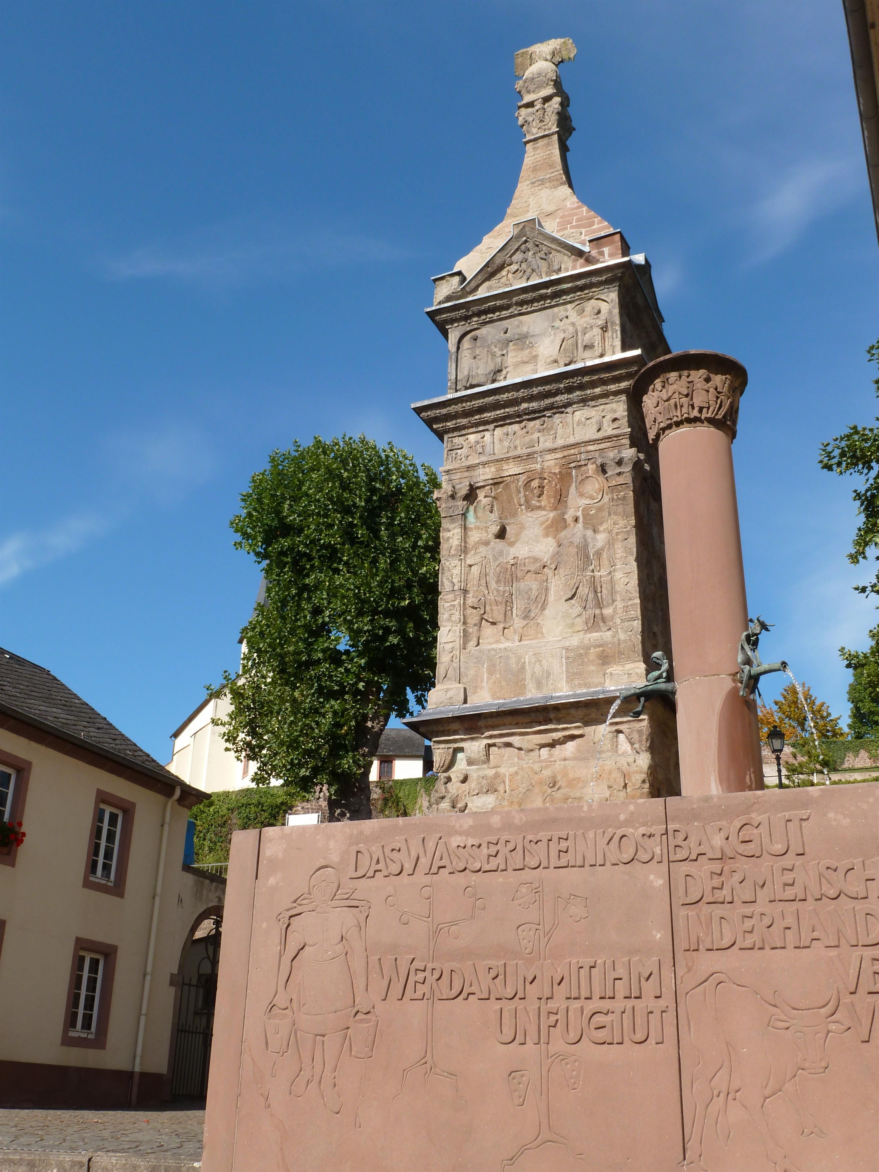 23 Meter ragt das Pfeilergrabmal empor, stand an einer alten Römerstraße und markierte möglicherweise den „Grabgarten“ der Familie. Das Monument wird auf die Zeit um 220 n. Chr. datiert und war einst bunt bemalt.