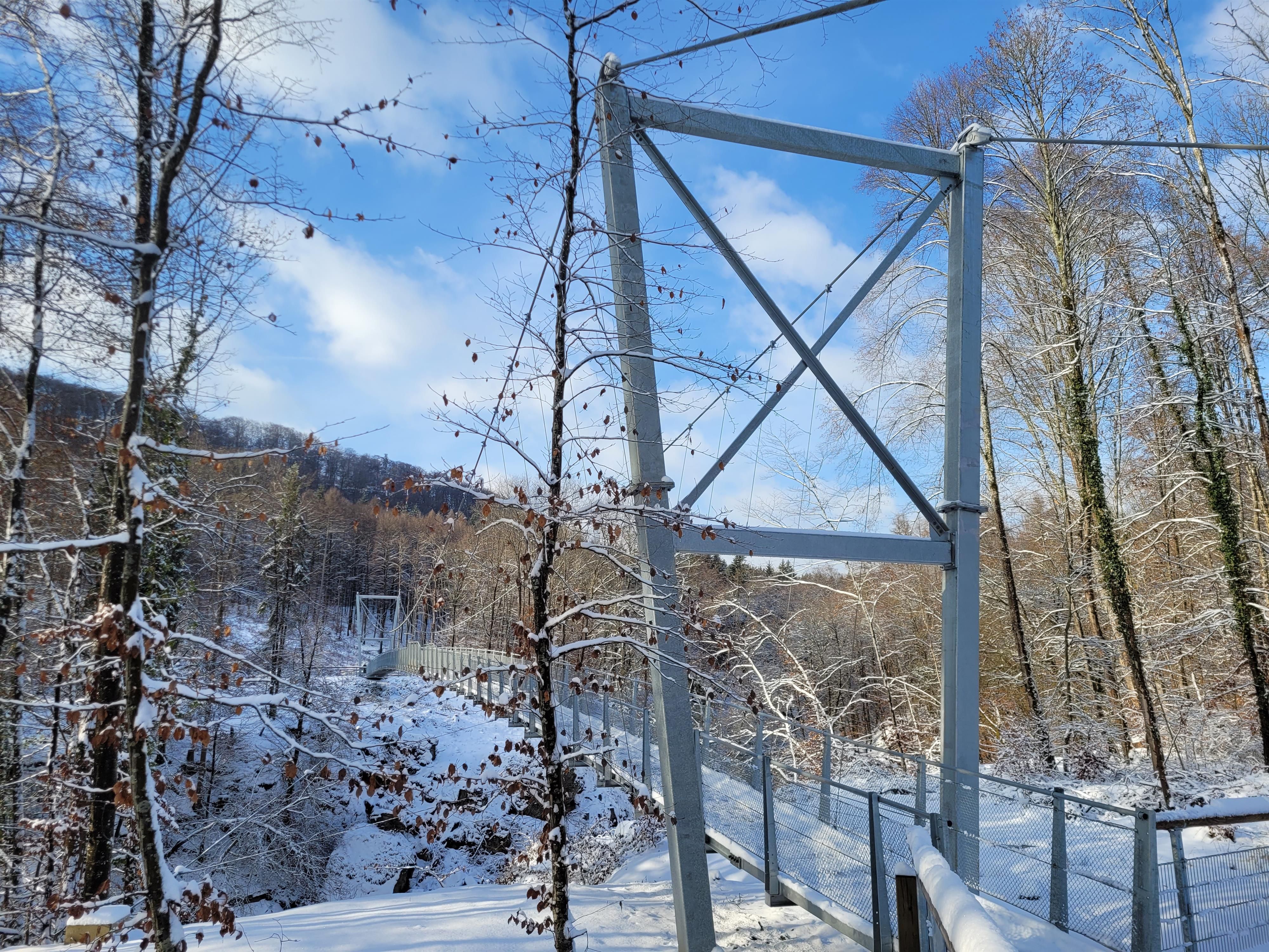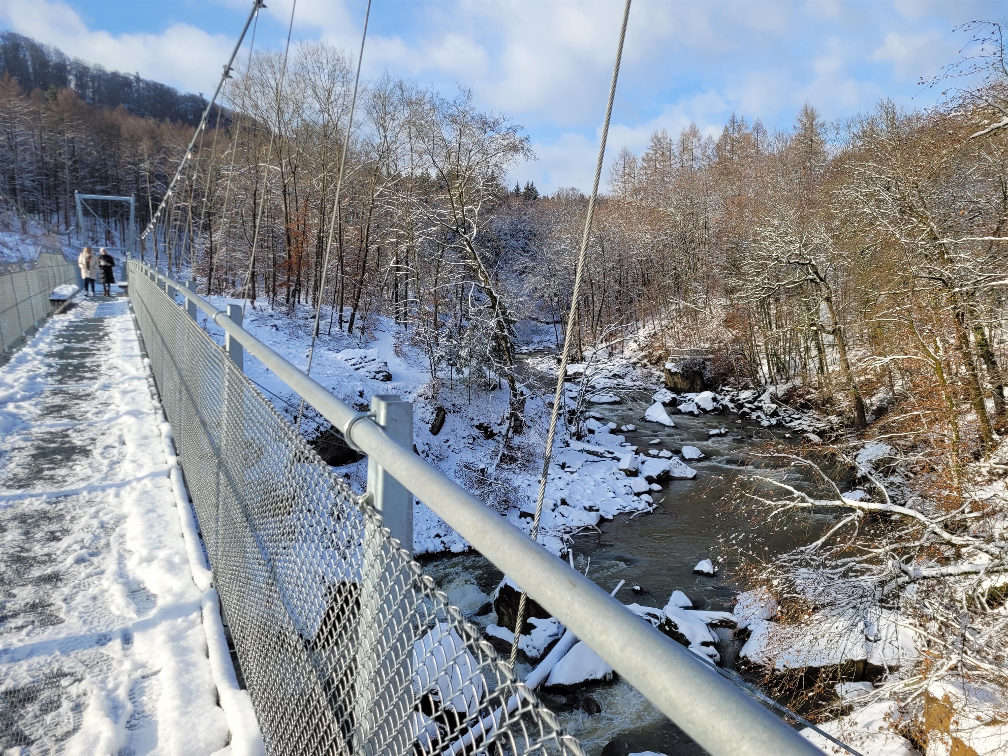 Seit dem Herbst 2023 kann man die Prüm wieder über eine neue, teilweise barrierefreie Hängebrücke überqueren. Weitere Informationen zur Brücke finden Sie in den beigefügten Dokumenten zum Download.