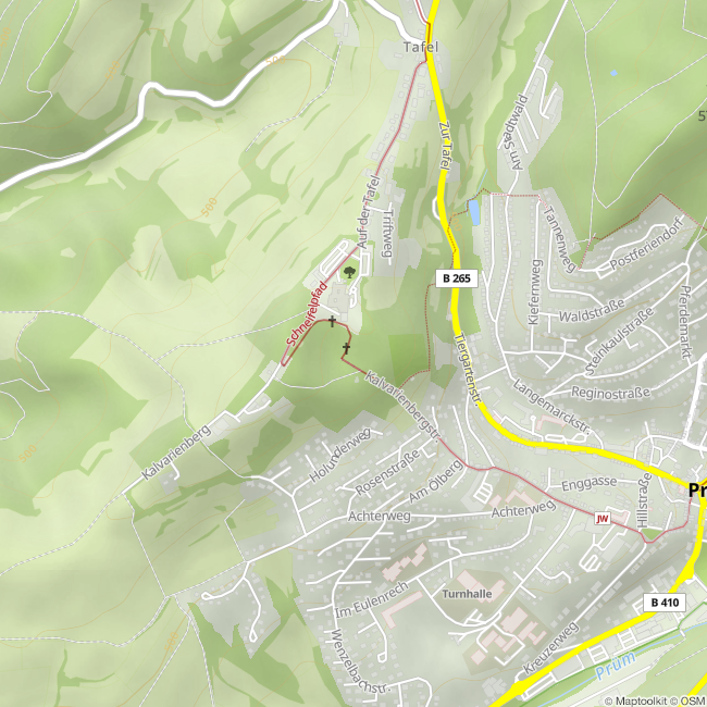Von den einstmals 14 Kreuzwegstationen, die den Weg zum Kalvarienberg säumten und die um etwa 1776 aufgerichtet worden waren, blieb bei der Explosionskatastrophe von 1949 nur die 3. Station übrig. Sie steht auf der linken Seite unter einer mächtigen Kastanie, direkt am Eingang rechts der Straße „Am Ölberg“. Dr. Dr. Enders, ein Niederprümer Bürger, ließ die Station restaurieren, dann wurde sie unter Denkmalschutz gestellt.
