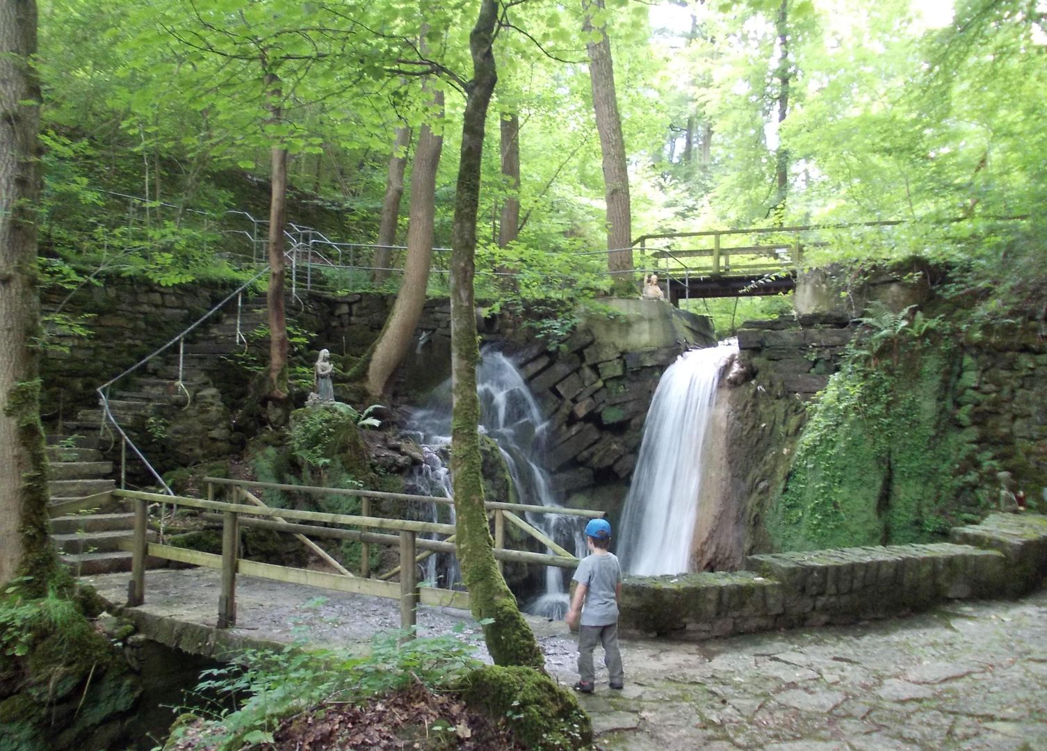 Östlich von Bitburg, ca. 3 km entfernt, liegt in einer idyllischen Kalkschlucht das Albachtal. Treppen aus Naturstein (Vorsicht Rutschgefahr) führen zu dem verwunschen Ort der Mariengrotte. Links und rechts säumen Moosflächen, Farne und Klee den Weg. Nach kurzer Zeit eröffnet sich der Blick auf einen Wasserfall und die Mariengrotte. Der Albach bildet mehrere kleine Wasserfälle bis er in das breitere Albachtal fließt. Der größte Wasserfall ist an der im Tal gelegenen Mariengrotte zu finden. Sie ist seit Generationen ein Ort der Marienverehrung und Ziel vieler Pilger. Die älteste Tafel stammt aus dem Jahre 1940. In der Grotte befindet sich eine kleine Wasserquelle, die von Besuchern als Weihwasser genutzt wird. An der Gedenkstätte sitzt zusätzlich eine kniende Maria auf der gegenüberliegenden Seite der dominierenden Marienstatue.