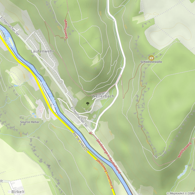Die WanderwegeFelsenweg 2 und Felsenweg 3 im NaturWanderPark delux führen am Schloss Weilerbach vorbei.
