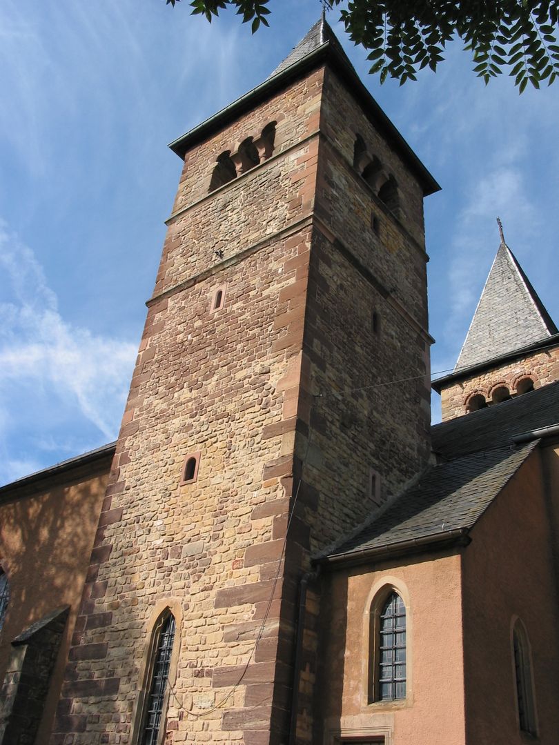 In der Kirche sind unterschiedliche Stilelemente längst vergangener Zeiten zu finden, angefangen bei den Römern über die Merowinger (ältestes Königsgeschlecht der Franken), sowie die Epoche der Romanik und der Gotik. Ein Blickfang ist der römische Springbrunnen im Innenraum der Kirche, welche einst auf einem römischen Kastell erbaut wurde.