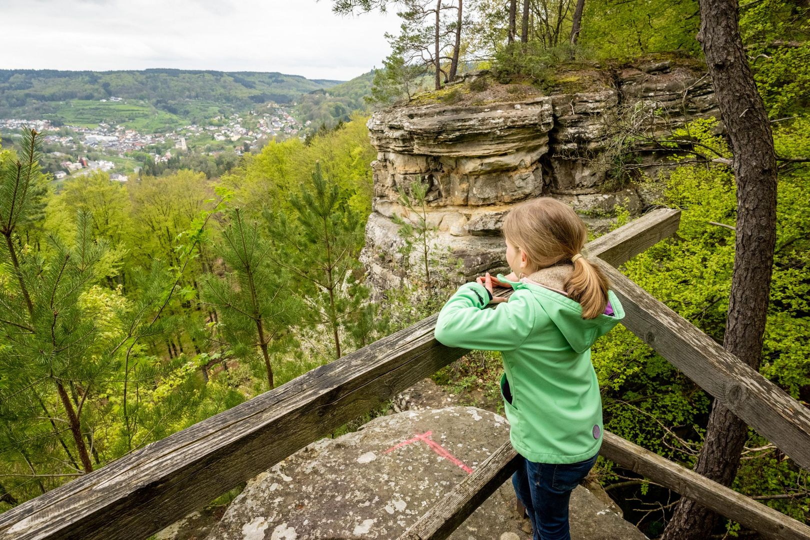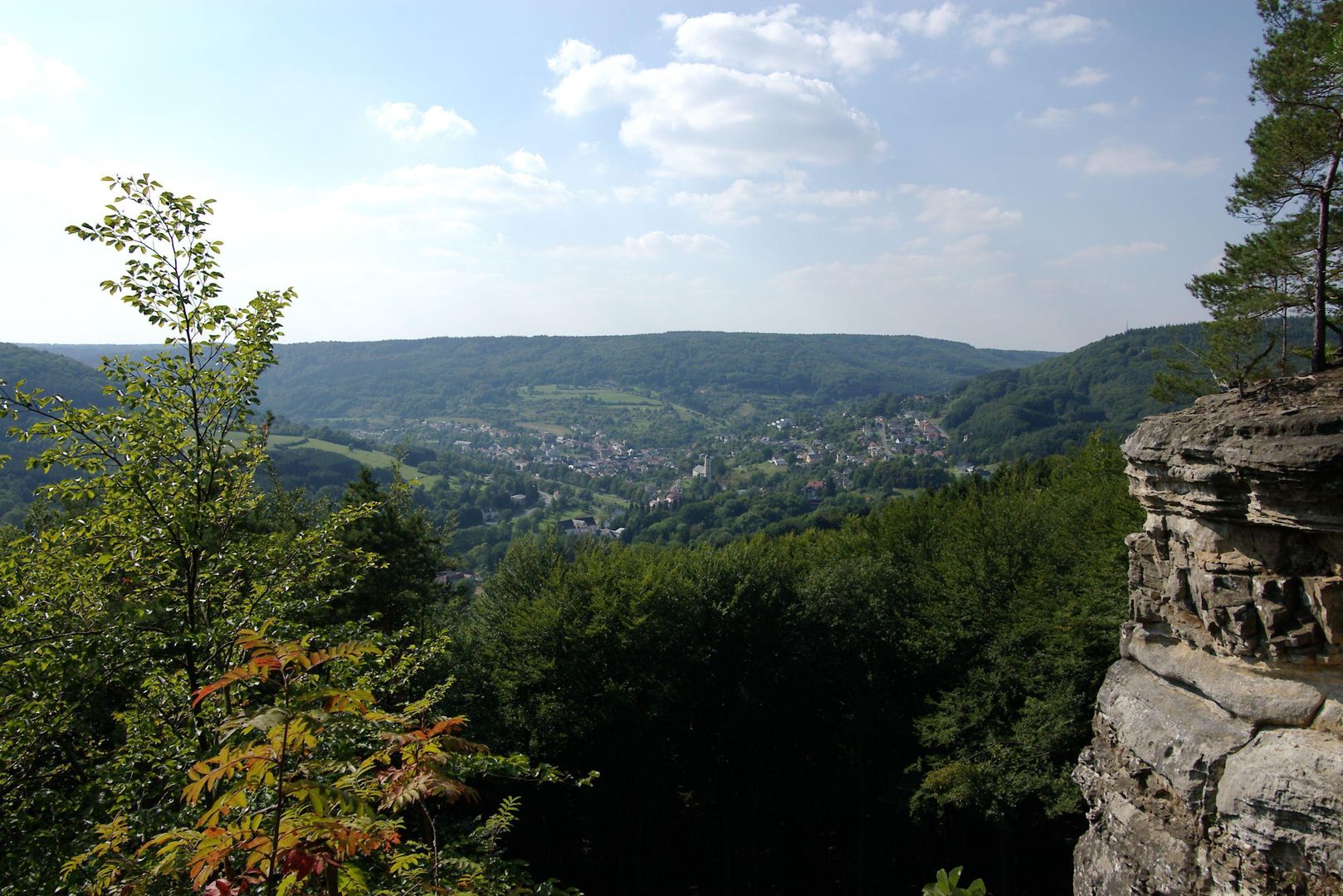 Auf keinen Fall versäumen sollte man den Blick vom Aussichtsfelsen oberhalb des Teufelslochs, der über eine steile Steige erreichbar ist. Von hier schaut man weit über das Tal mit seinen bewaldeten Felshängen und Bollendorf auf dem rechten Sauerufer.
