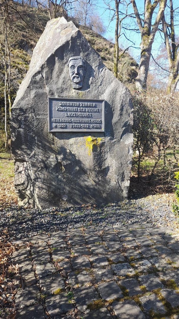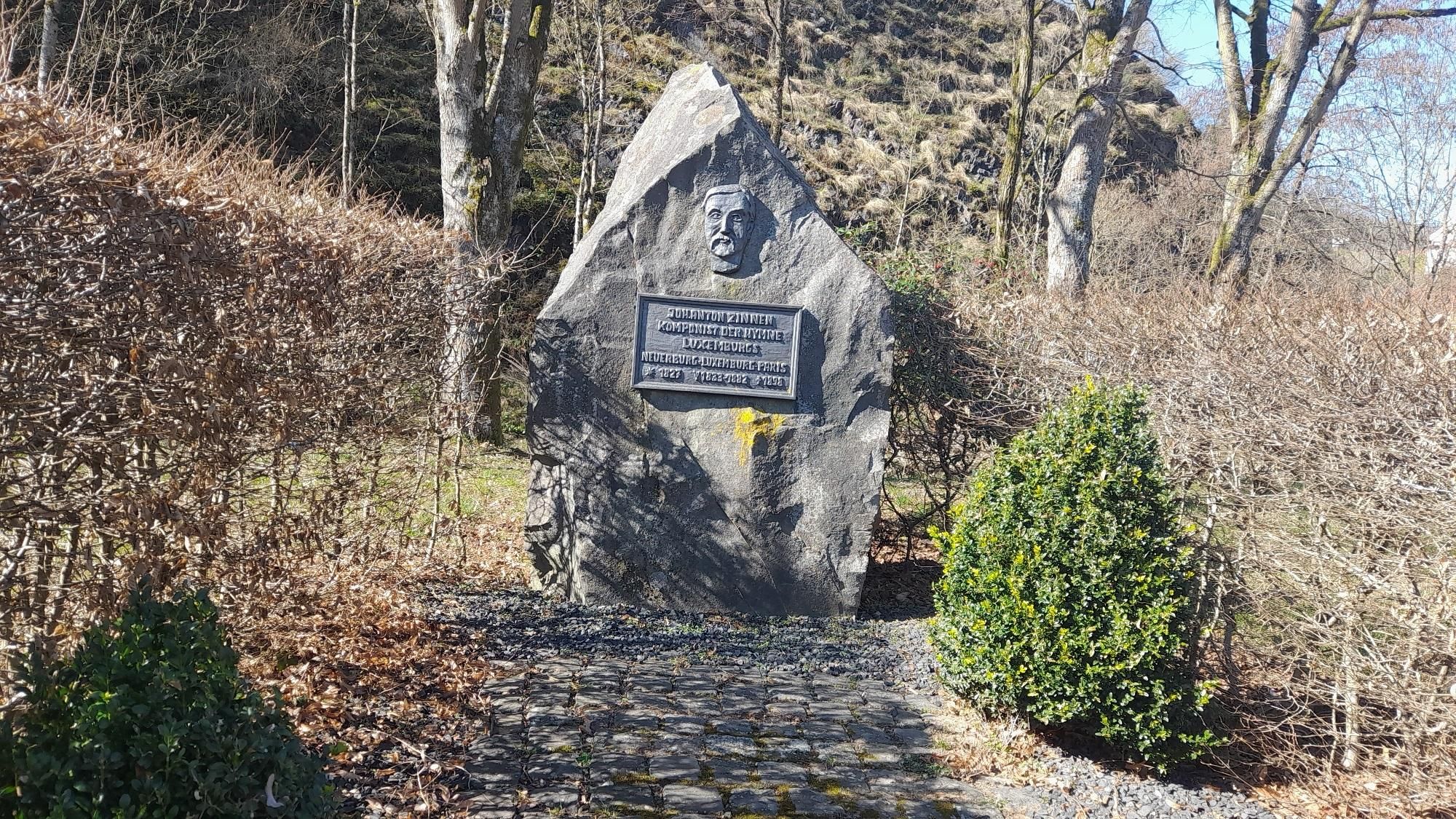 Der Gedenkstein ist dem berühmten in Neuerburg geborenen Komponisten Johann Anton Zinnen gewidmet.