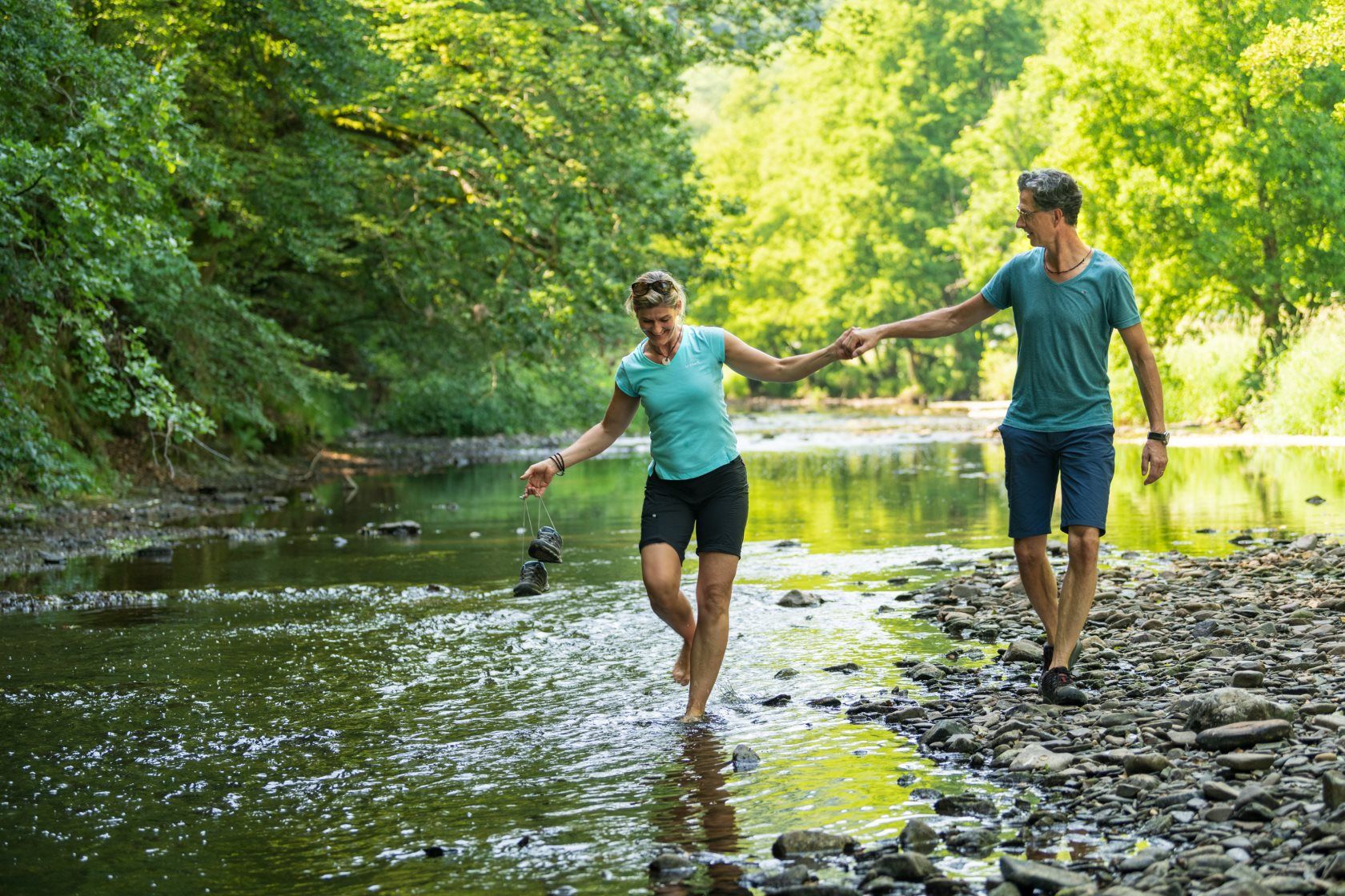 Die Worte des Einsiedlers scheinen nachzuhallen, wenn ihr weiter talaufwärts wandert. Nach einigen Höhenmetern offenbart sich hinter einer Biegung überraschend eine ganz andere Welt: Der Blick fällt auf das prächtige, mittelalterliche Schloss Hamm. Hier geben Hochzeitspaare sich ihr Ja-Wort und feiern mit ihren Gästen. Auf dem Pfad gibt es viele weitere Wunder zu entdecken. Zahlreiche Heilkräuter wachsen entlang des Weges und die schroffen Gesteinslandschaften mit ihren Jahrmillionen alten Einschlüssen erzählen ihre eigene Geschichte.