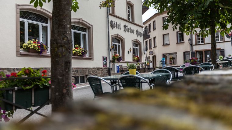 Das Hotel "Victor Hugo", welches ganzjährig geöffnet ist, liegt im Zentrum der malerischen Stadt Vianden. Das renovierte Hotel bietet moderne und komfortable Zimmer, welche mit Dusche, WC, TV, einige mit Bad oder Whirlpool und Telefon ausgestattet sind. Außerdem ist ein privater Kinderspielplatz vorhanden.