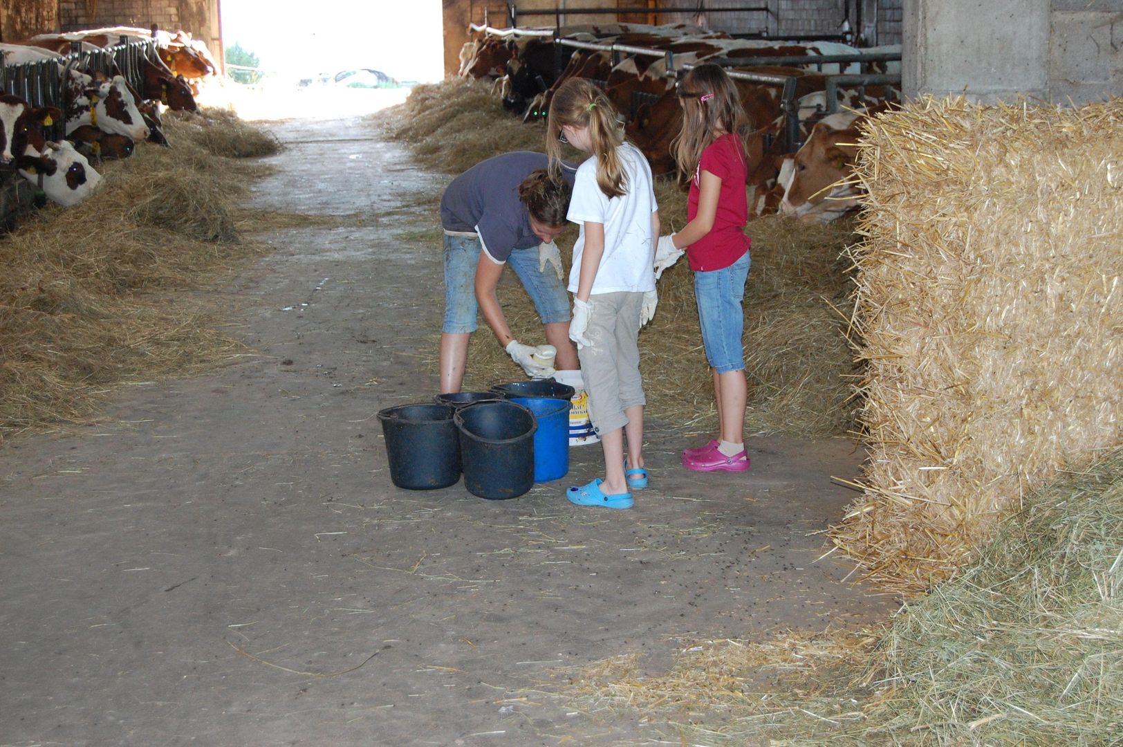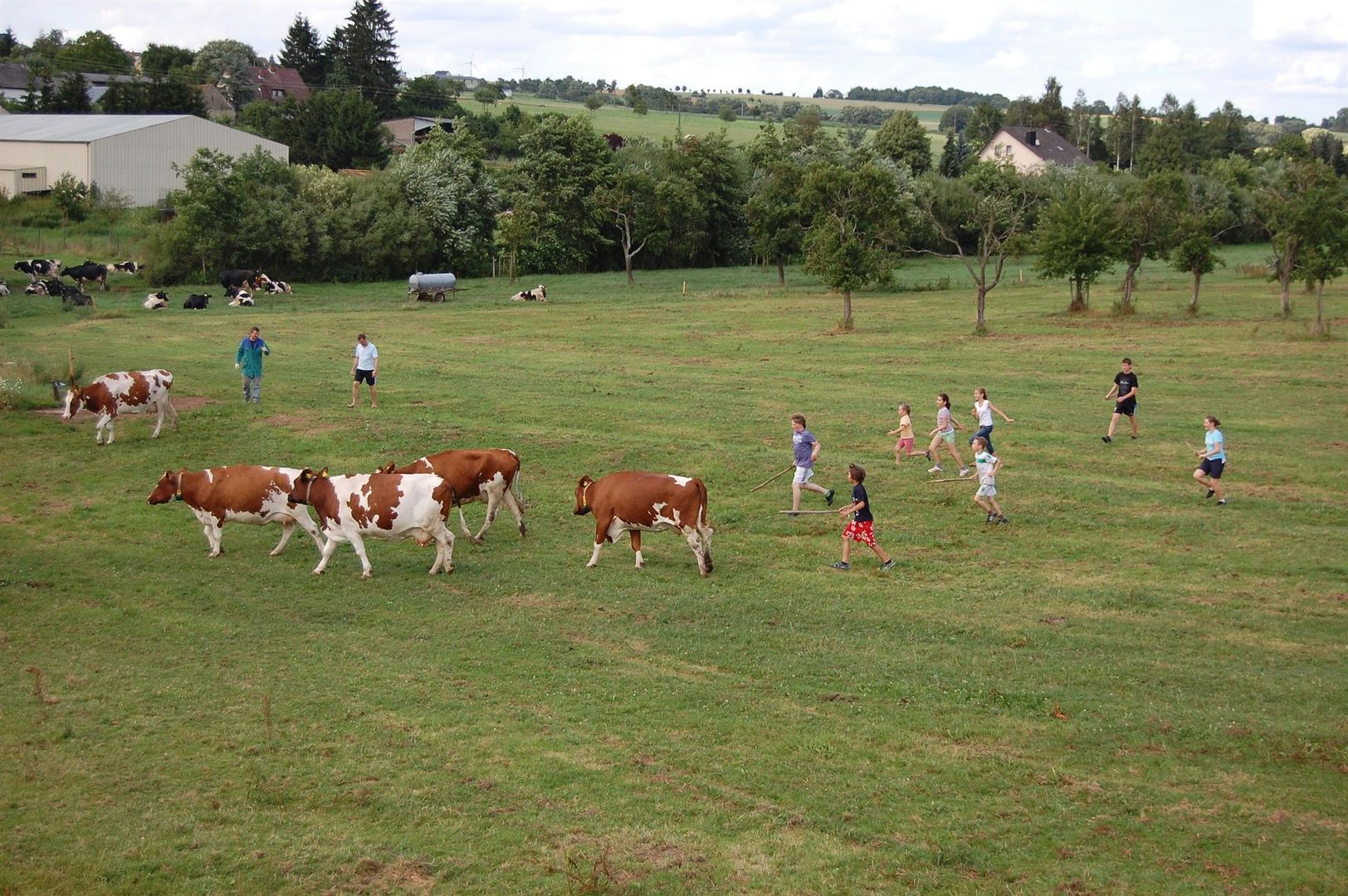 Zum Ferienhof gehört ein voll bewirtschafteter Bauernhof mit Kühen, Ponys und Katzen in 150 m Entfernung. Hier können Sie hautnah beim Melken zusehen und mithelfen oder mit dem Traktor mitfahren.