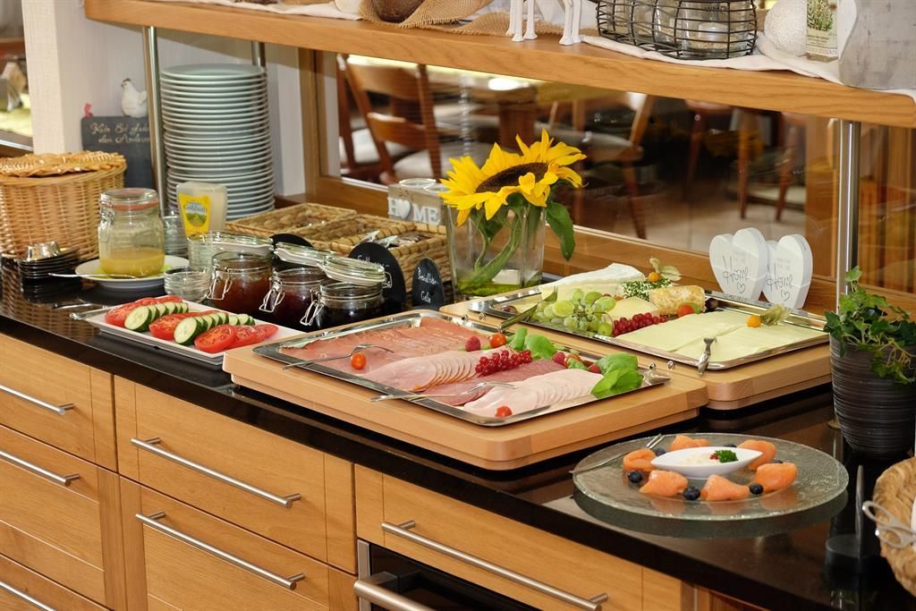 Genießen Sie das Eifeler Frühstücksbuffet oder ein Schlemmer-3-Gänge Menü am Abend mit Produkten vom eigenen Hof.