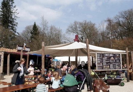 Mit der Teufels Küche im Besucherzentrum sowie Dinos Diner im Dinosaurierpark Teufelsschlucht bieten sich in der Nähe der Teufelsschlucht gleich zwei Möglichkeiten zur Stärkung und Rast an.