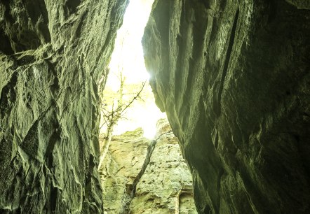 Die Teufelsschlucht - eines der faszinierendsten Naturdenkmäler der Eifel! Wer einmal über zahllose steinerne Stufen hinab zum Grund der Schlucht gestiegen ist und dann nach oben schaut, wo zwischen den fast dreißig Meter hohen Felswänden Wald und Himmel sich zeigen, dem prägen sich unvergessliche Bilder ein…