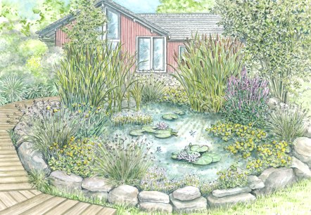 Geeignete Gestaltungselemente und Materialien für den Garten.