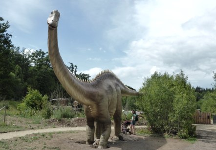 Gleich neben der Teufelsschlucht kann man im Dinosaurierpark in vergangene Erdzeiten eintauchen. Über 100 lebensgroße Rekonstruktionen ausgestorbener Arten sind zu sehen - auf gehts zu T-Rex, Mammut & Co.