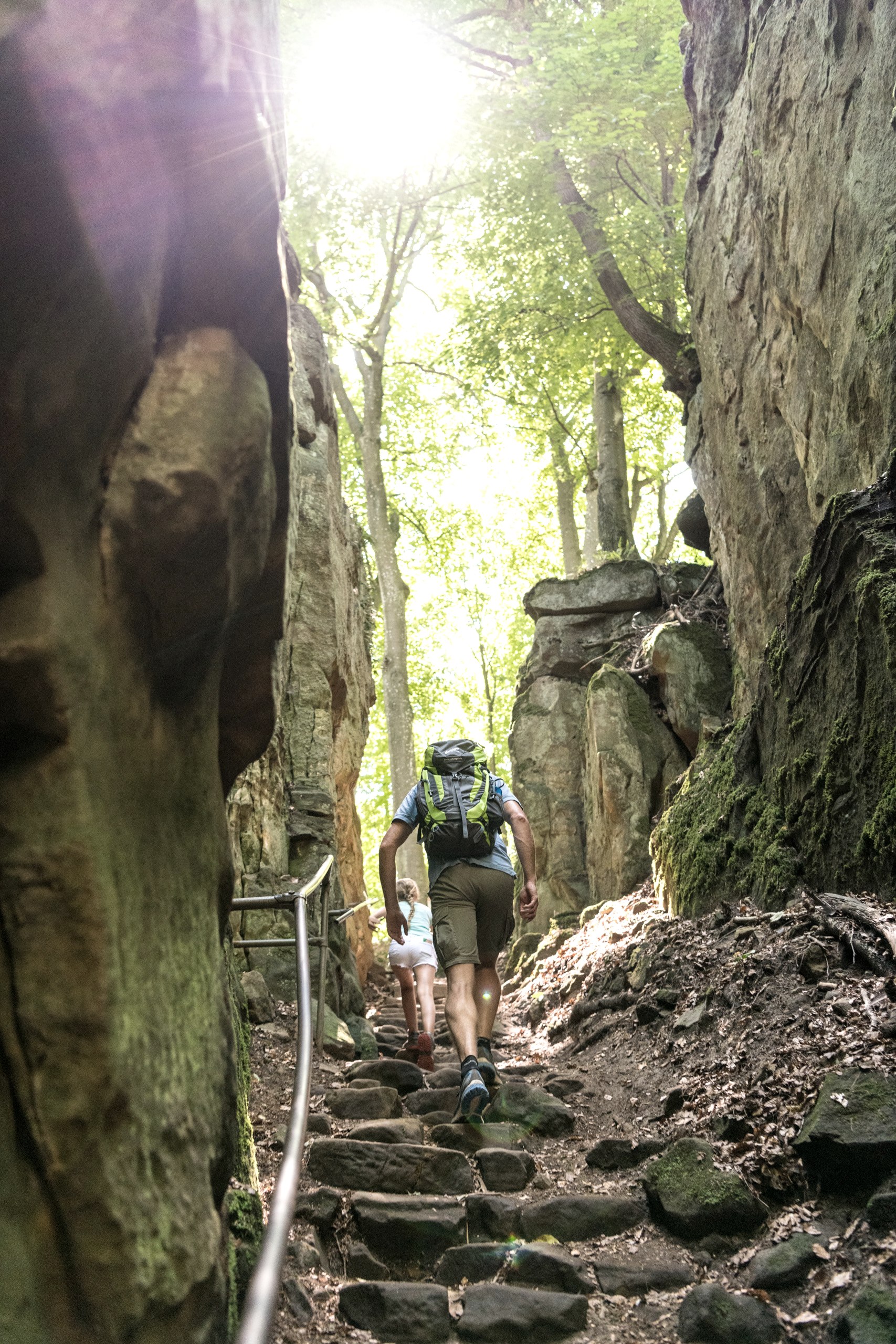 Wie ist die Teufelsschlucht entstanden? Haben tatsächlich Bienen Waben im Sandstein gebaut? Warum wächst der Hopfen im Prümtal? Lauschtour-Reporter Marco Neises und Archäologin Elke Wagner nehmen Sie mit auf Tour und zeigen Ihnen die Highlights der faszinierenden Felslandschaft rund um die Teufelsschlucht. Im Naturparkmuseum fliegen Sie mit den beiden im Helikopter über den Deutsch-Luxemburgischen Naturpark, reisen zurück in die Steinzeit und hören spannende Geschichten von Kelten und Römern!