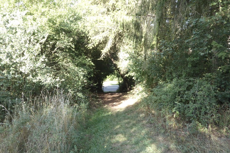 Der Fußweg zum Bahnhof Speicher führt geradeaus bis zur Treppe am "Roten Grund“ und wurde früher als im Winter noch
