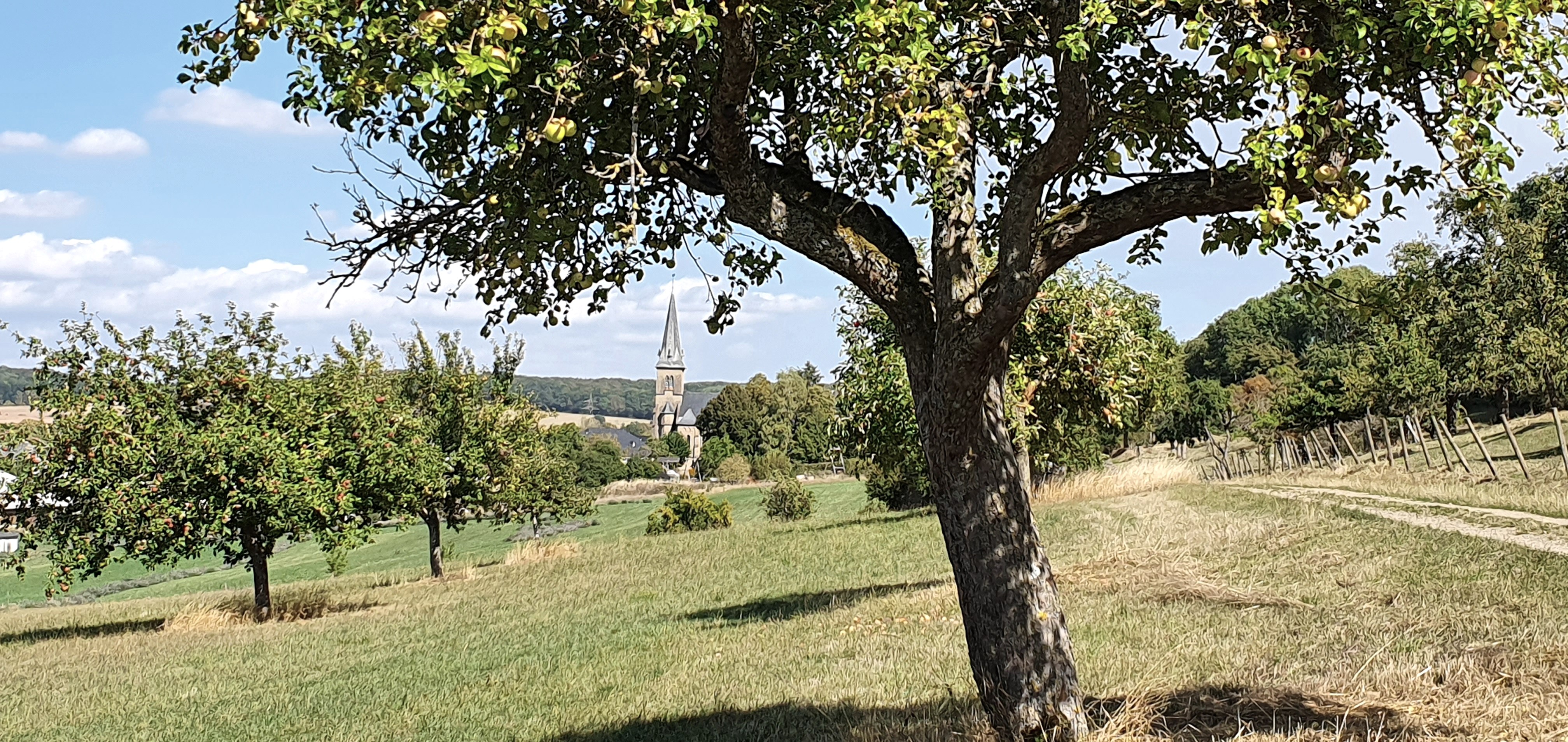Schöne Ausblicke über die Streuobstwiesen und das Nüßbach-Tal werden Ihnen hier geboten.