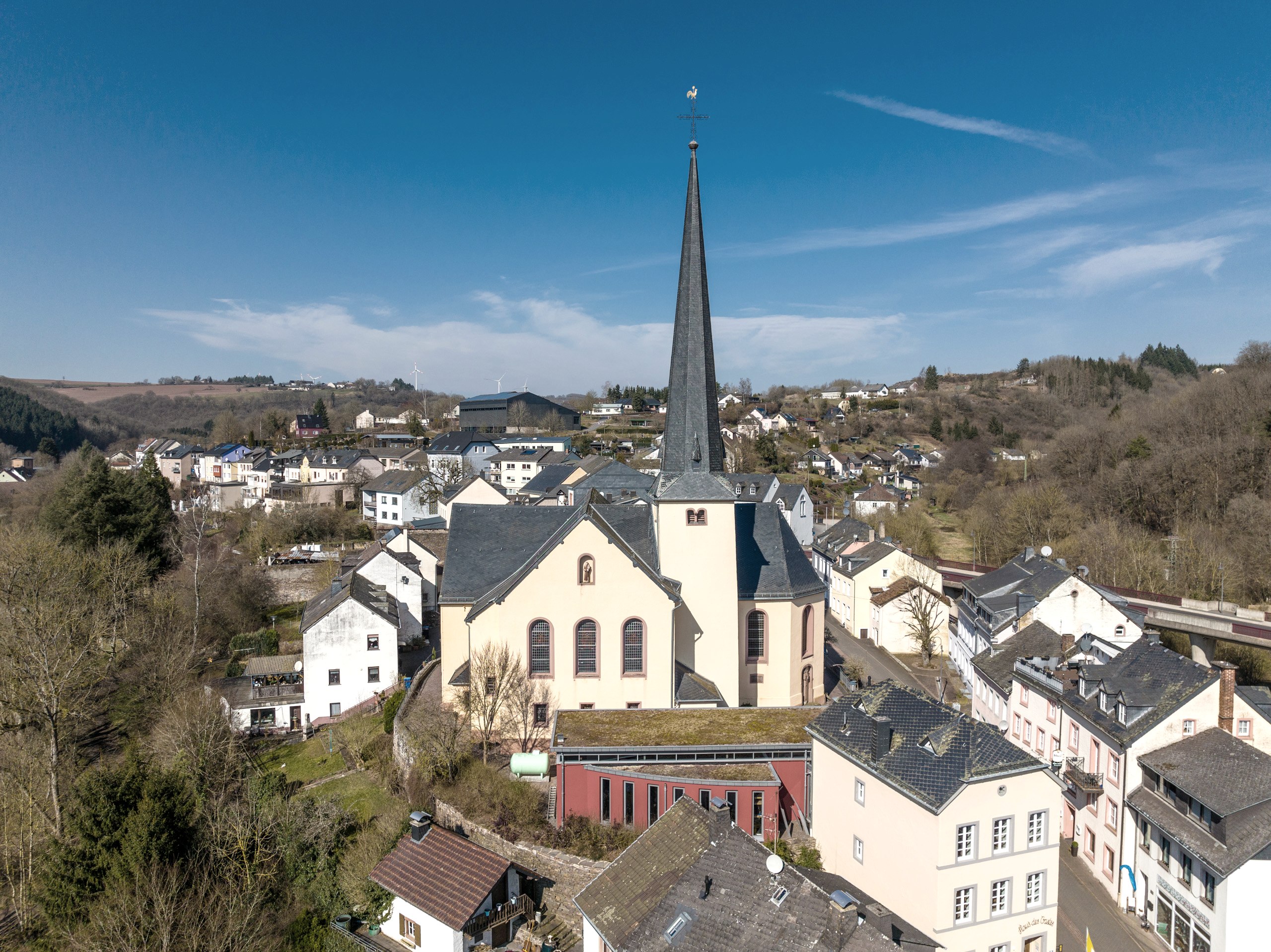 Gleich am Start an der Mariensäule begrüßt euch das erste Eifel-Panorama mit Blick auf Waxweiler mit dem Südeifeldom. Zunächst geht es knackig bergan über den Eichelsberg bis zum Trielsberg, dann über sonnengeflutete Wiesen und durch lichten Wald bergab ins malerische Weiherbachtal, dem ihr bis Waxweiler folgt. Ein Abstecher ins Urzeitmuseum DEVONIUM sei euch ans Herz gelegt, denn hier kommt ihr dem spannenden Landgang der Tiere und Pflanzen vor rund 400 Millionen Jahren unterhaltsam auf die Spur.