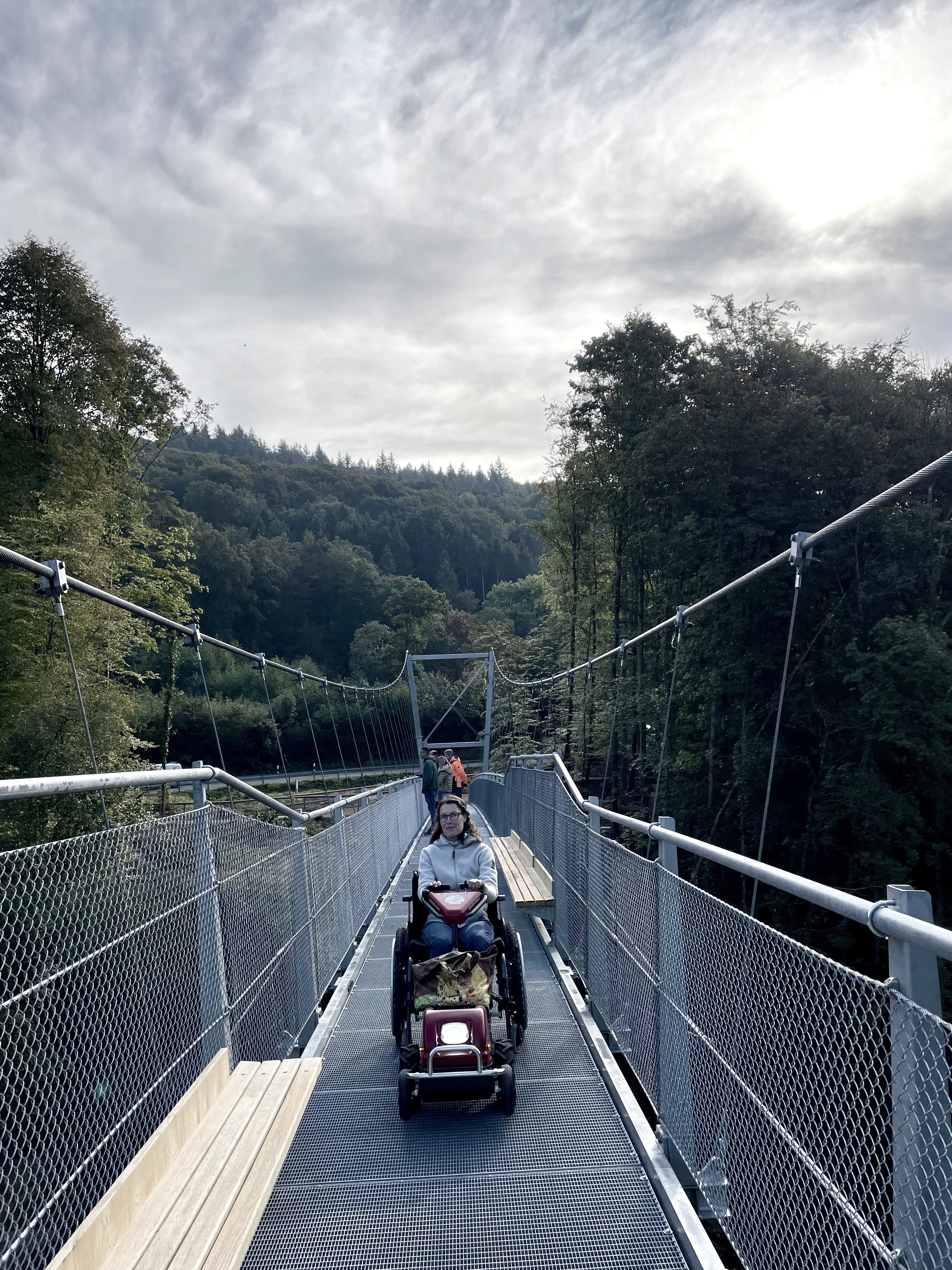 Im Naturpark Südeifel gibt es Rollstuhlzuggeräte, Swiss-Tracs, mit denen vorhandene Wanderwege besucht werden können. Eine für Swiss-Tracs geeignete Route mit einem besonderen Highlight, der neuen Hängebrücke über den Irreler Wasserfällen, ist die Kombi-Route Hängebrücke Irreler Wasserfälle – Prümzurlay.