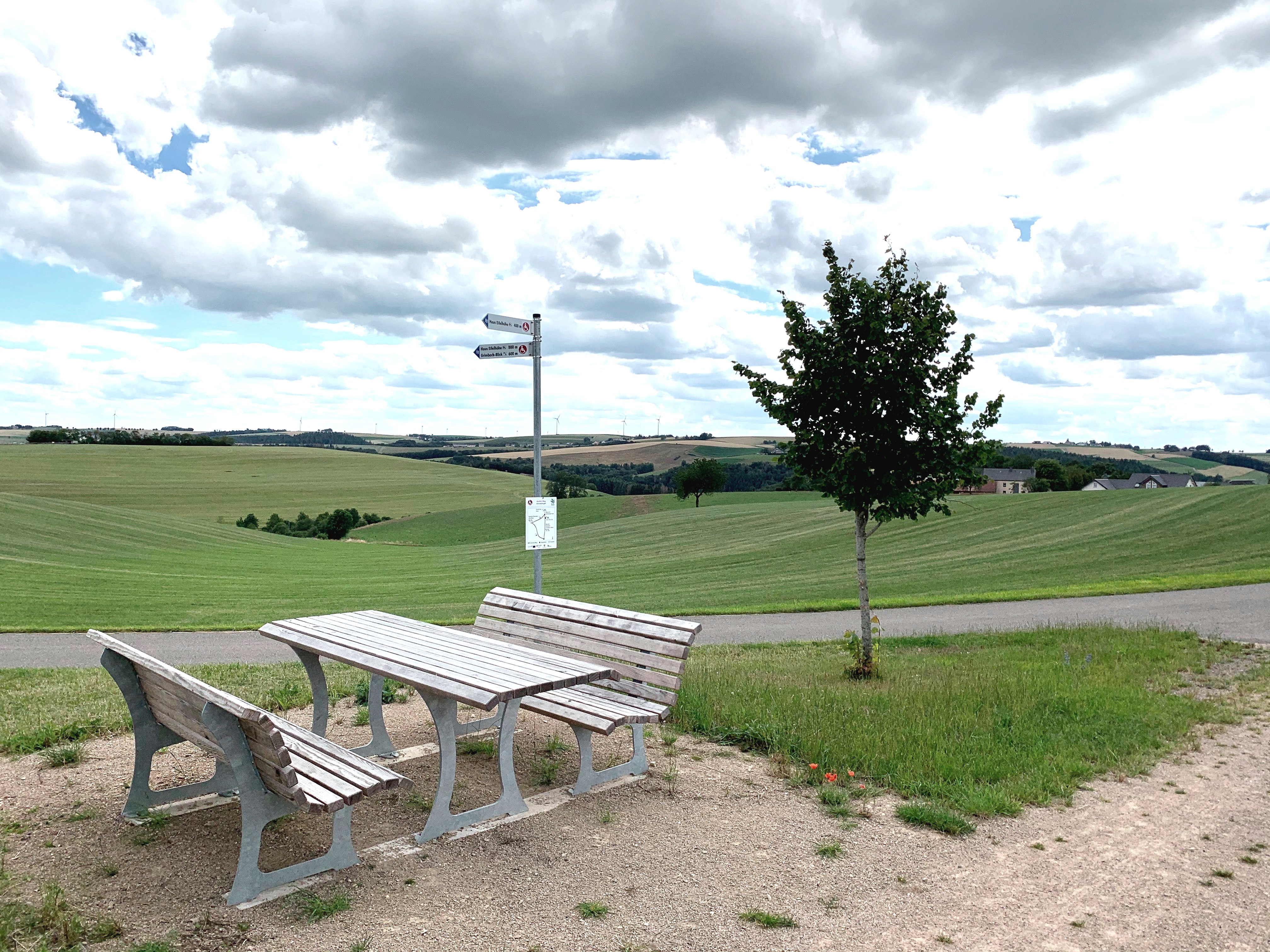 Weite Blicke in die Eifel-Landschaft, Wiesen und Felder soweit das Auge reicht, Rastplätze die zum Verweilen einladen – das alles prägt diesen 1,2 Kilometer langen Rundweg in Ammeldingen bei Neuerburg.
