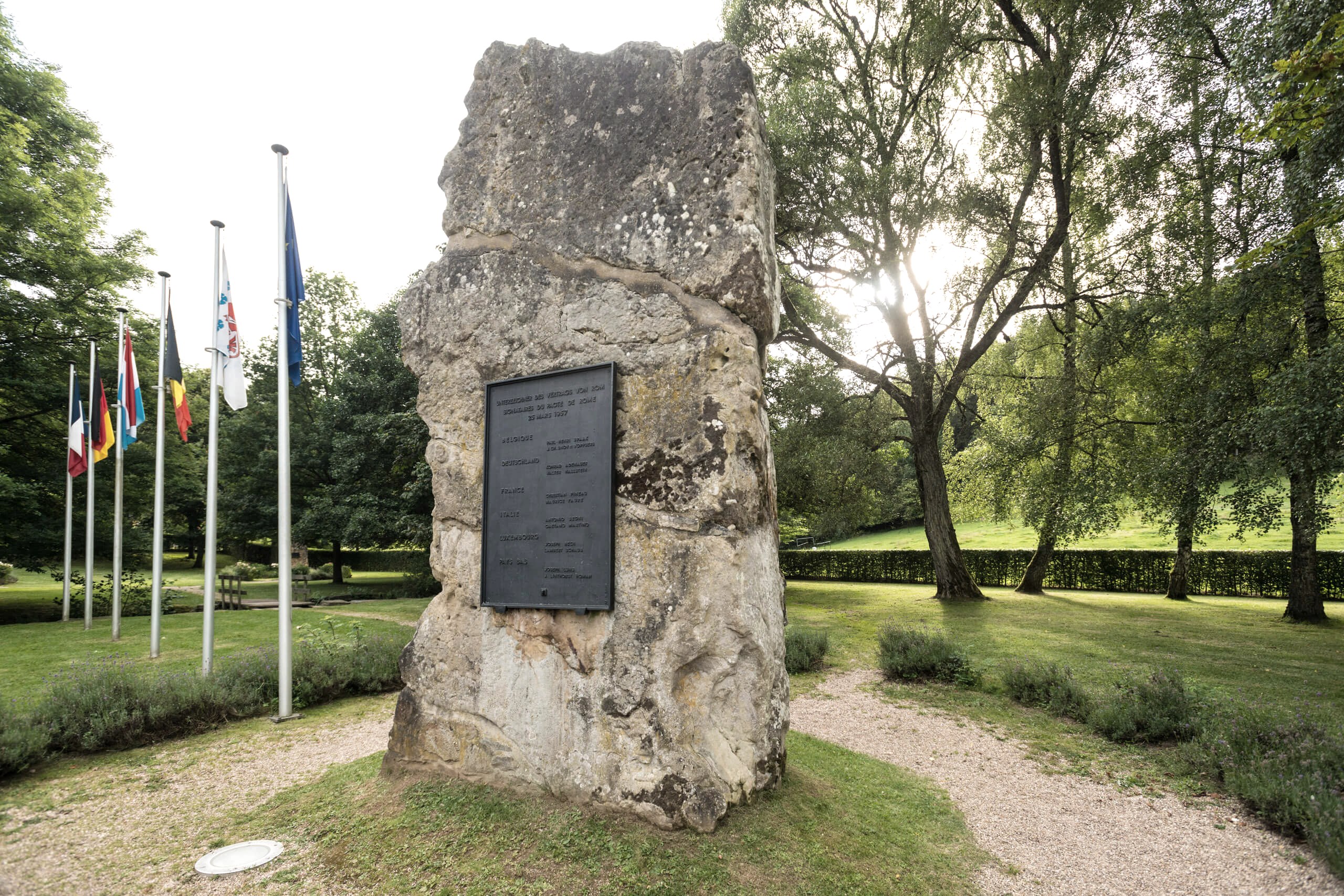 Die Nat‘Our-Route 1 startet am Europadenkmal im Dreiländereck von Luxemburg, Deutschland und Belgien. Schlicht und symbolträchtig erinnert das Denkmal an die Unterzeichnung der Römischen Verträge im März 1957 und an die Begründer der Europäischen Gemeinschaft.
