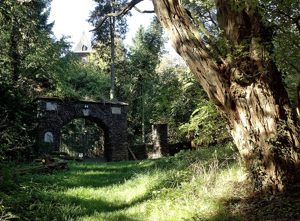 Jetzt aber los! Wie auch die übrigen Nat’Our Routen ist diese ein deutsch-luxemburgischer Rundweg. Ihr startet im luxemburgischen Ort Bivels, überquert den Stausee – und damit die Grenze – auf der blauen Stahlbrücke und steigt über Waldwege zur Ruine Falkenstein an, die sich in Privatbesitz befindet. Rechts vom Eingangsportal lässt sich prima rasten und sogleich umfängt euch eine märchenhafte Dornröschen-Romantik, die zum Verweilen, Kuscheln und Träumen einlädt.