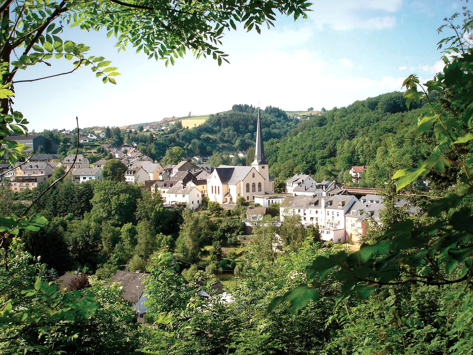 Der Wanderweg "100" umrundet das im Prümtal liegende Waxweiler in der Weise, dass man die schmucke Ortschaft von allen Seiten in Augenschein nehmen kann. Im Laufe des Weges erschließt sich auch die Rolle der sich im Tal windenden Prüm als gestaltende Kraft für diese romantsiche Landschaft. Man sollte den Weg in Muße gehen, sich zahlreiche Pausen gönnen und ruhig einen Tag für dieses besondere Wandererlebnis einplanen.