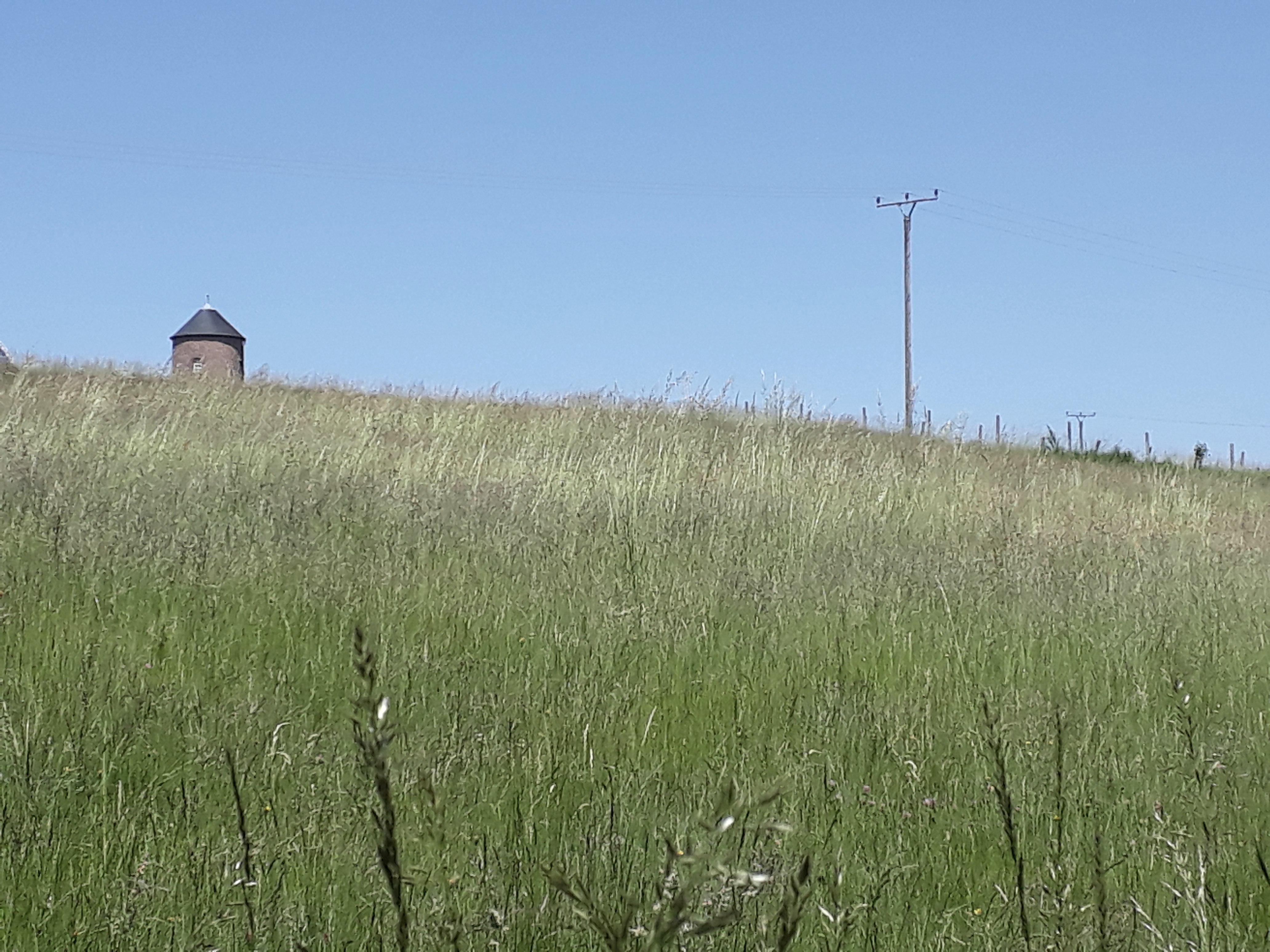 Außerdem kann man auf dem Weg die Spitze eines ehemaligen Wasserturms sehen. Hinter dem hohen Gras, sieht er fast wie ein Leuchtturm hinter den Dünen an der Nordsee aus.