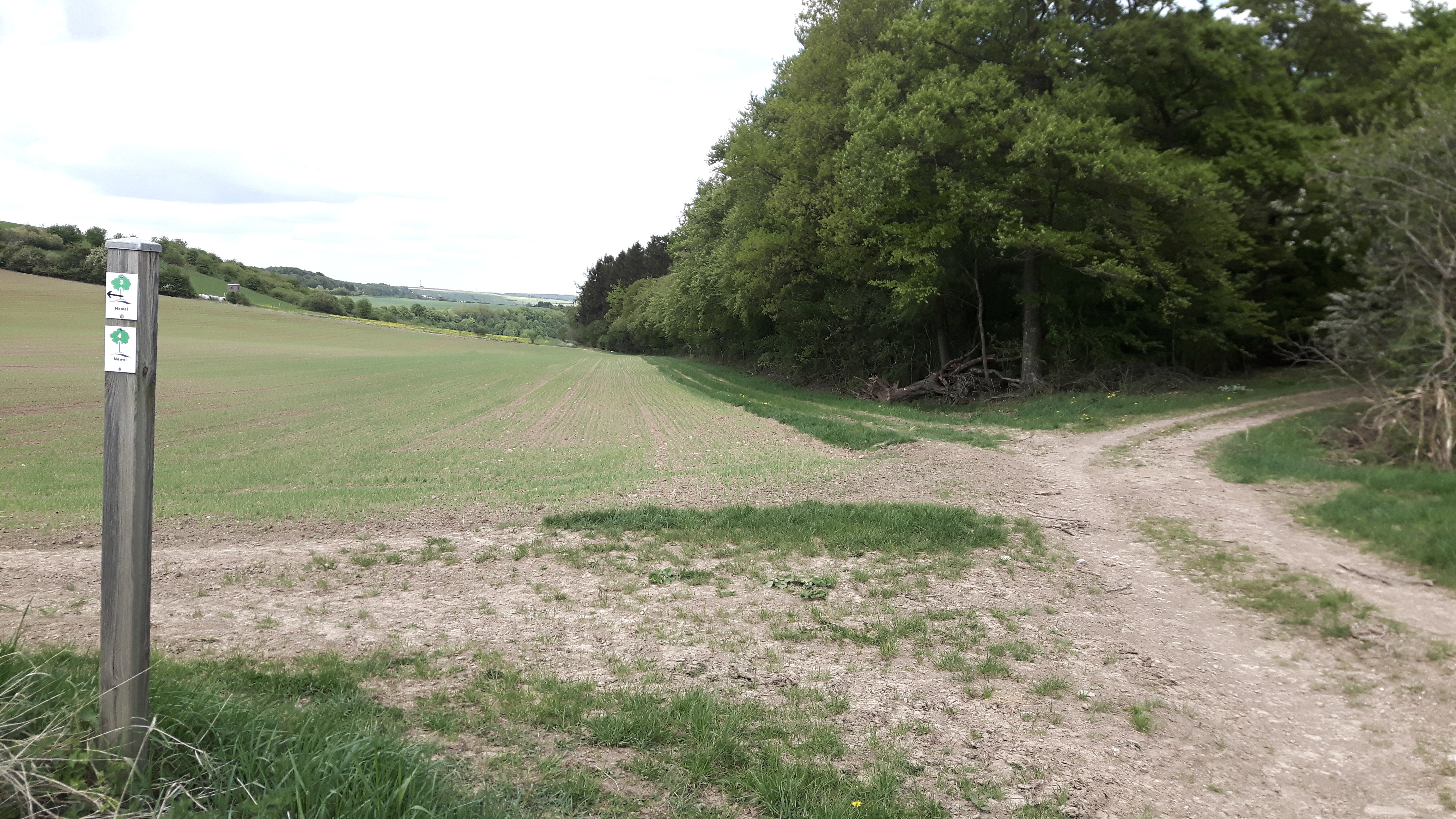 Start ist am Gemeindehaus in Newel. Entlang typischer Eifelhäuser führt der Weg durch Newel hinaus auf die Felder. Geschwungene Wege führen vorbei an Pferdekoppeln und durch ein verborgenes Waldstück. Dieses absolut unberührte Waldstück kann deswegen als Geheimtipp bezeichnet werden. Am Bach entlang herrscht eine Ruhe, die Erholung bringt. Im Sommer spenden die Bäume kühlenden Schatten auf dem folgenden steten Anstieg. Aus dem abgelegenen Waldstück heraus hat das Auge wieder einen Rundumblick über die Landschaft. Die Tour führt weiter nach Kreuzerberg, wo ein kleiner Anstieg mit einer Aussicht über den ganzen Ort belohnt wird. Über die Höhe geht es durch Wald und Felder zurück nach Newel. Dieser abwechslungsreiche Wanderweg bietet sich besonders für eine Familienwanderung oder einen Ausflug mit Hunden an.