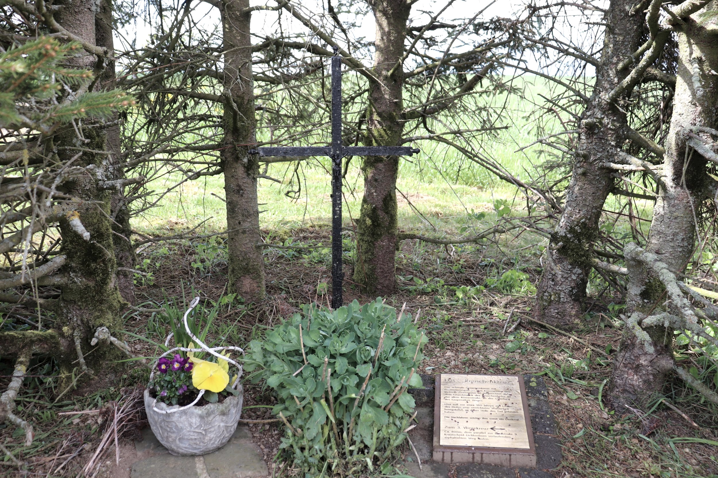 Zur Entstehungsgeschichte ist bei jedem Kreuz im Boden eine Informationstafel eingelassen, die am Ende jeweils die Richtung zum nächsten Wegekreuz angibt. Der Rundwanderweg bietet z.T: herrliche Fernsichten in die weite Umgebung bis hin zur Schneifel und ins nahe Prümtal.